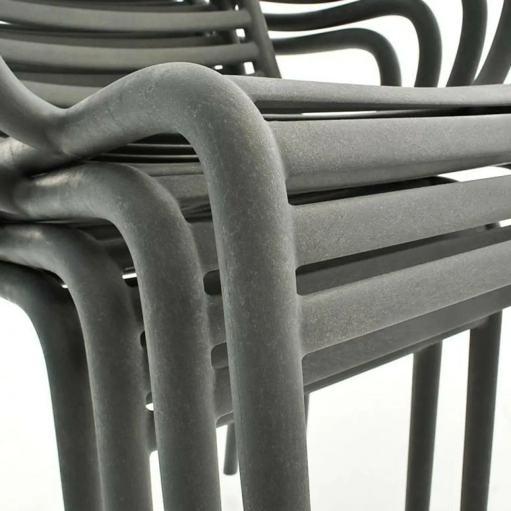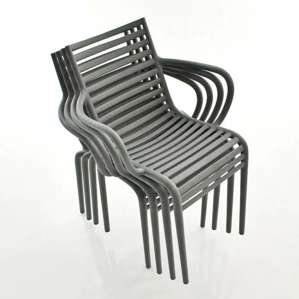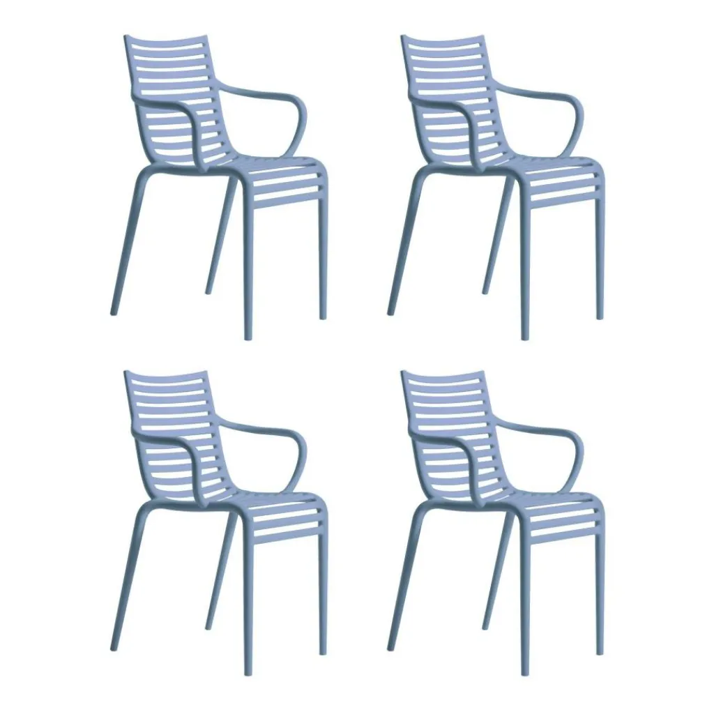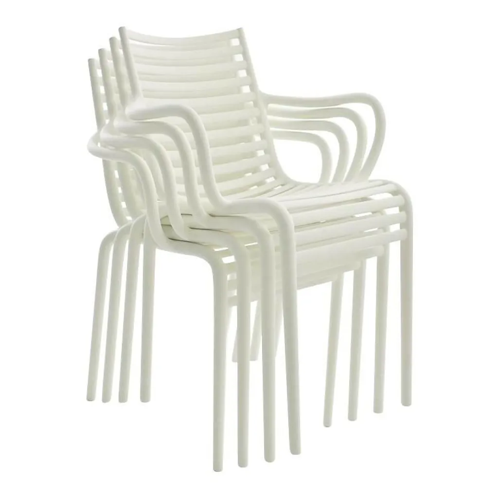 Das Pip-e Gartenarmlehnstuhl 4er Set wurde von Philippe Starck für die Marke Driade entworfen. Es gehört einer Serie von stylishen Stühlen an, die sich für drinnen und draußen eignen. Für das formschöne Design stand der klassische Lattenstuhl Modell. So begeistern die Pip-e-Modelle mit ihren von gleichmäßigen Linien geprägten Sitzflächen.