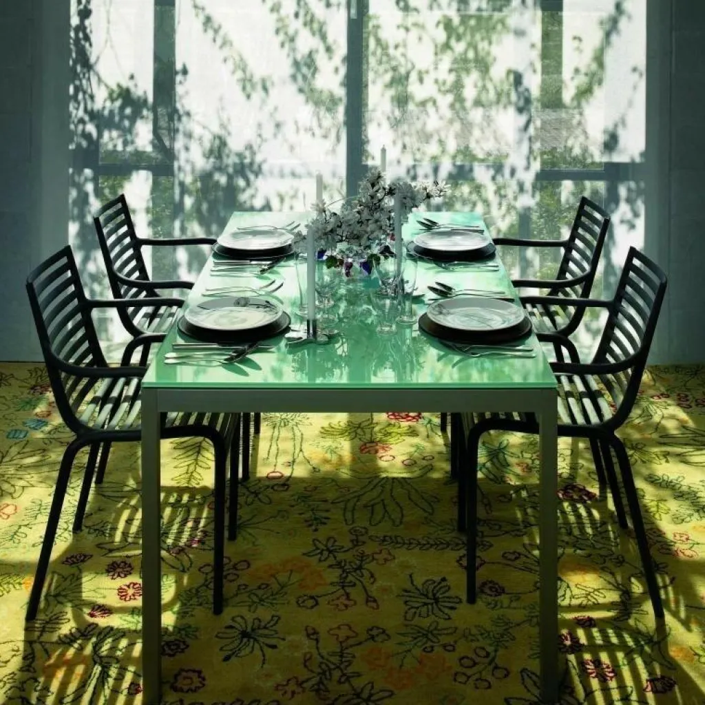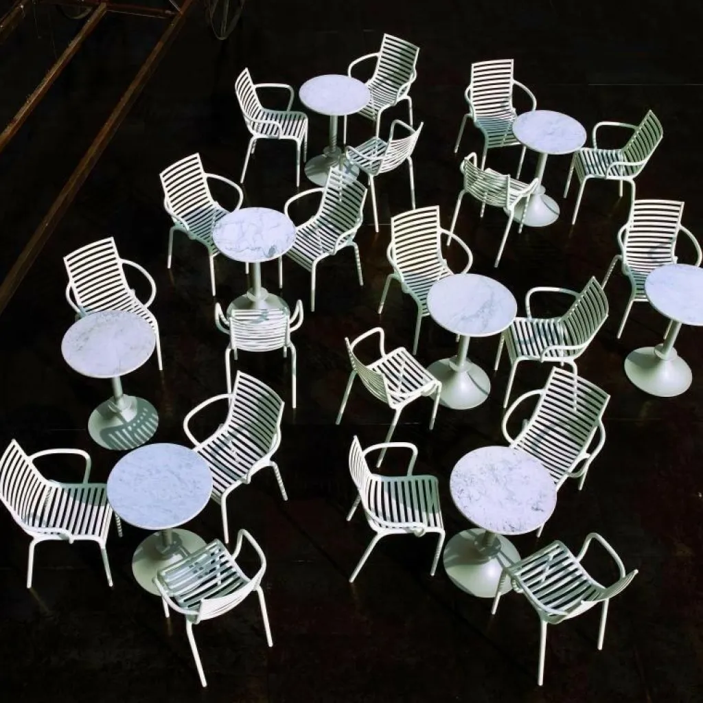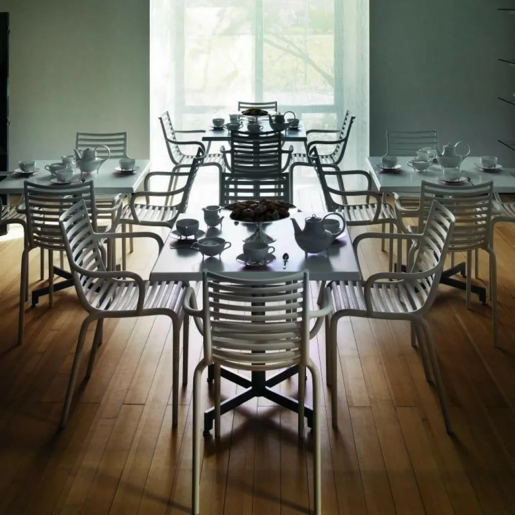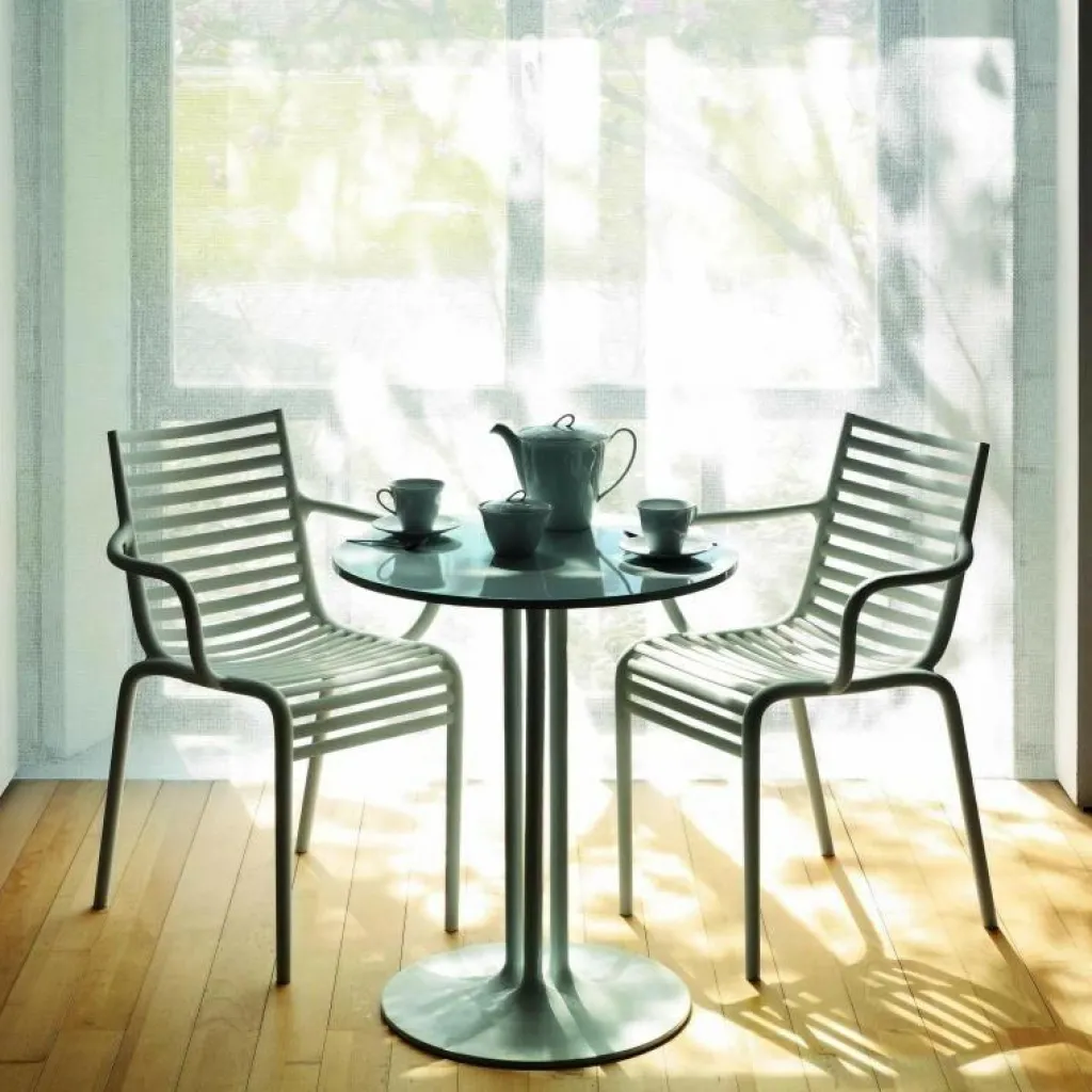 Das Pip-e Gartenarmlehnstuhl 4er Set wurde von Philippe Starck für die Marke Driade entworfen. Es gehört einer Serie von stylishen Stühlen an, die sich für drinnen und draußen eignen. Für das formschöne Design stand der klassische Lattenstuhl Modell. So begeistern die Pip-e-Modelle mit ihren von gleichmäßigen Linien geprägten Sitzflächen.