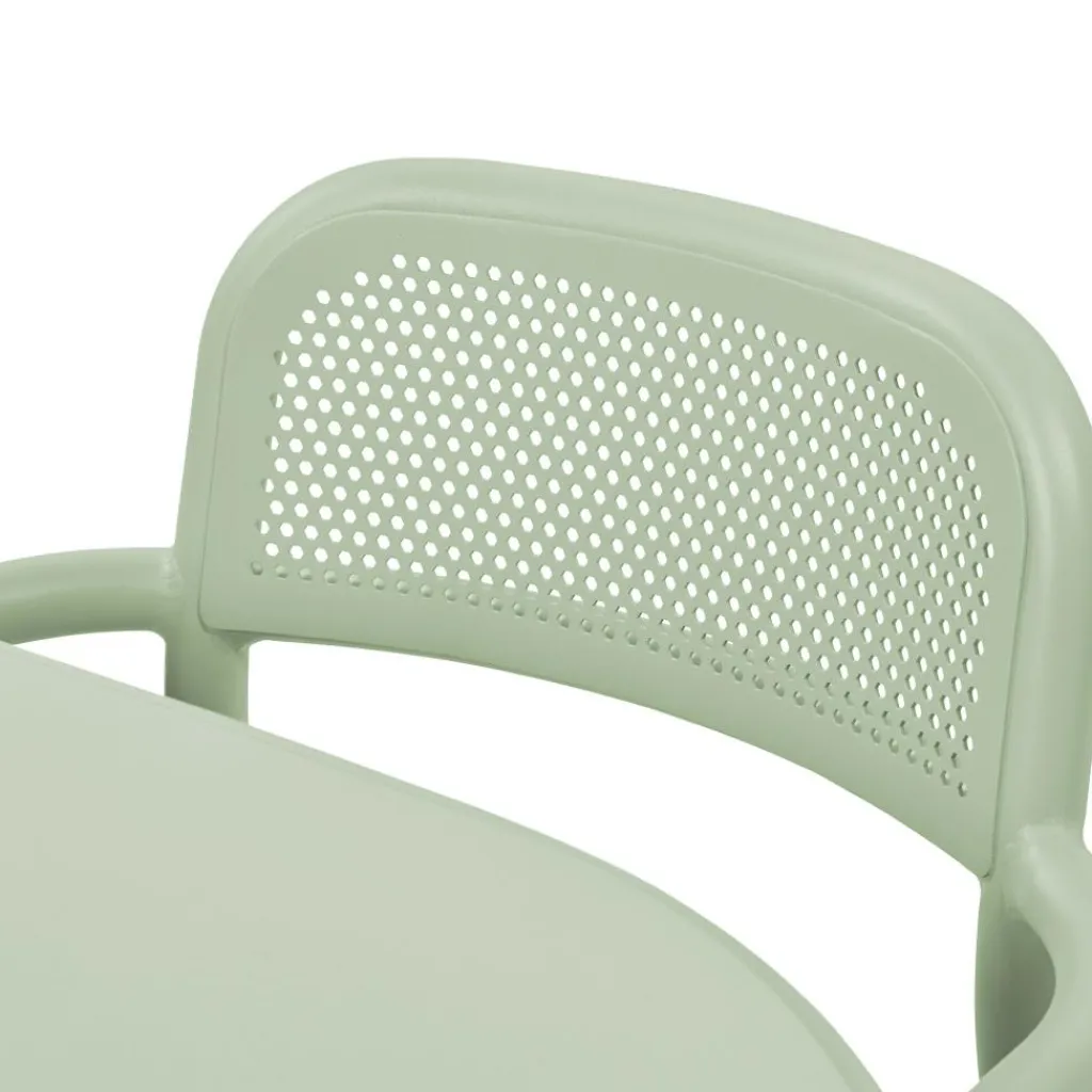 Mit 3,9 Kilogramm zählt der Toní Gartenarmlehnstuhl zu den Leichtgewichten, das sich mit den Maßen 54,8 x 59,5 x 80,5 cm präsentiert. Sie können ihn problemlos stapeln und somit platzsparend unterbringen. Sein Design erinnert an einen klassischen Bistrostuhl, dessen abgerundete Formen für eine gemütliche Ausstrahlung sorgen. Zu einem angenehmen Sitzgefühl tragen die Armlehnen bei. Ob Sie ihn auf dem Balkon, der Terrasse, im Garten oder auch im Innenbereich verwenden – er macht überall eine gute Figur. Die große Farbauswahl hält für jeden Geschmack das Passende bereit.