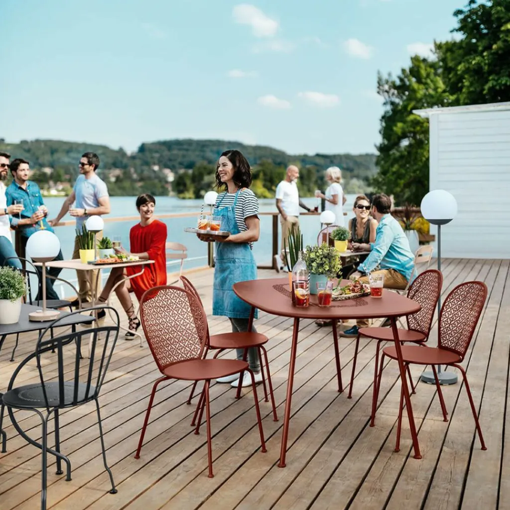 Der Lorette Gartenstuhl wurde von Frederic Sofia für die Marke Fermob entworfen. Mit diesem exquisiten Stuhl zieht der Geist von Ludwig XVI. in Ihren Garten ein. Dessen Medaillon-Stuhl wurde vom Designer auf zeitgenössische Weise neu interpretiert.