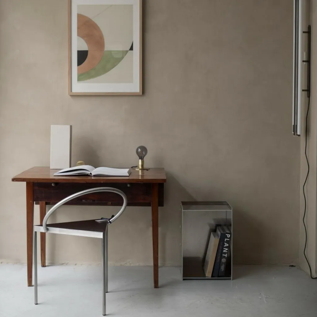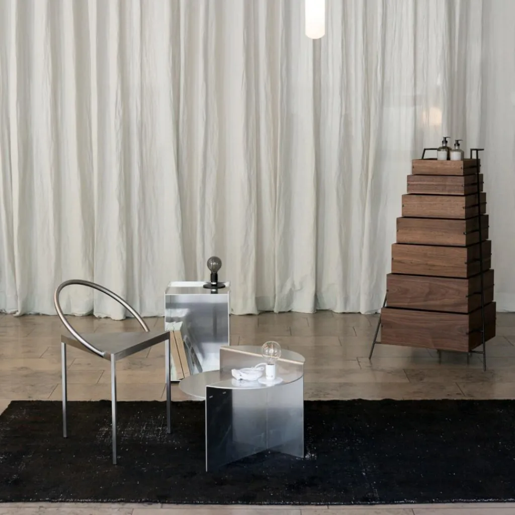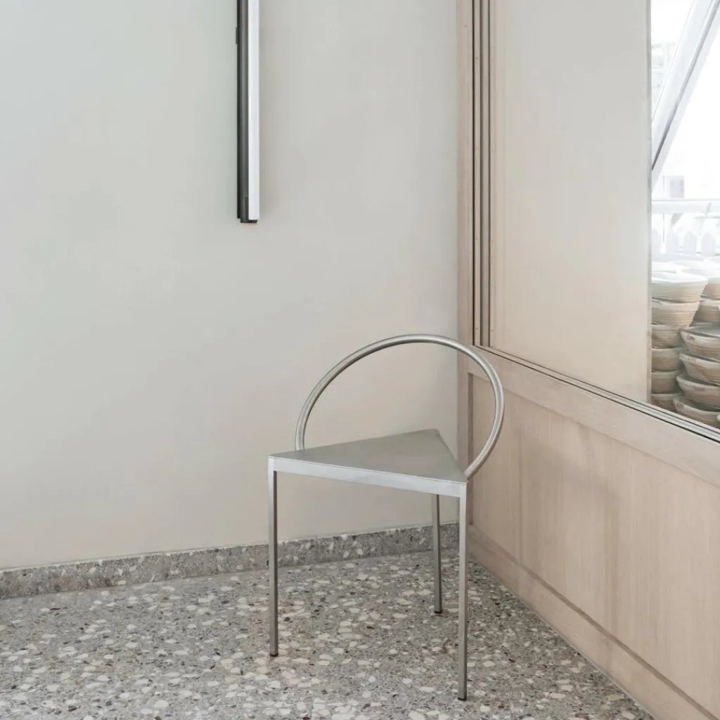 Der Triangolo Stuhl sieht aus wie eine zeitgenössische Skulptur und setzt sich dabei über die für Sitzgelegenheiten typischen Formen hinweg: Die Sitzfläche ist nicht wie üblich rechteckig oder quadratisch, sondern dreieckig gefertigt. Sie ist an drei schlanken Beinen befestigt. Einen bemerkenswerten Kontrast dazu bildet die Rückenlehne, die einen Halbkreis bildet. Auch dabei setzt sich Bastrup über alle Konventionen hinweg: Die Rückenlehne ist nämlich nicht gerade, sondern schräg montiert. Nimmt man in dem Sessel Platz stützt sie trotz der außergewöhnlichen Form perfekt. Der Triangolo Stuhl besteht aus Stahl und erweist sich als langlebig und pflegeleicht.