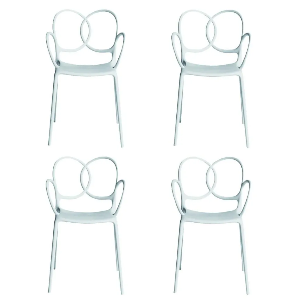 Das verspielte Sissi Gartenarmlehnstuhl 4er Set wurde von den Designern Roberto Palomba und Ludovica Palomba für den Hersteller Driade entworfen. Die verschlungene Lehne des Stuhls sorgt nicht nur dafür, dass Sie komfortabel sitzen, sondern auch für stilechtes Design einstehen.