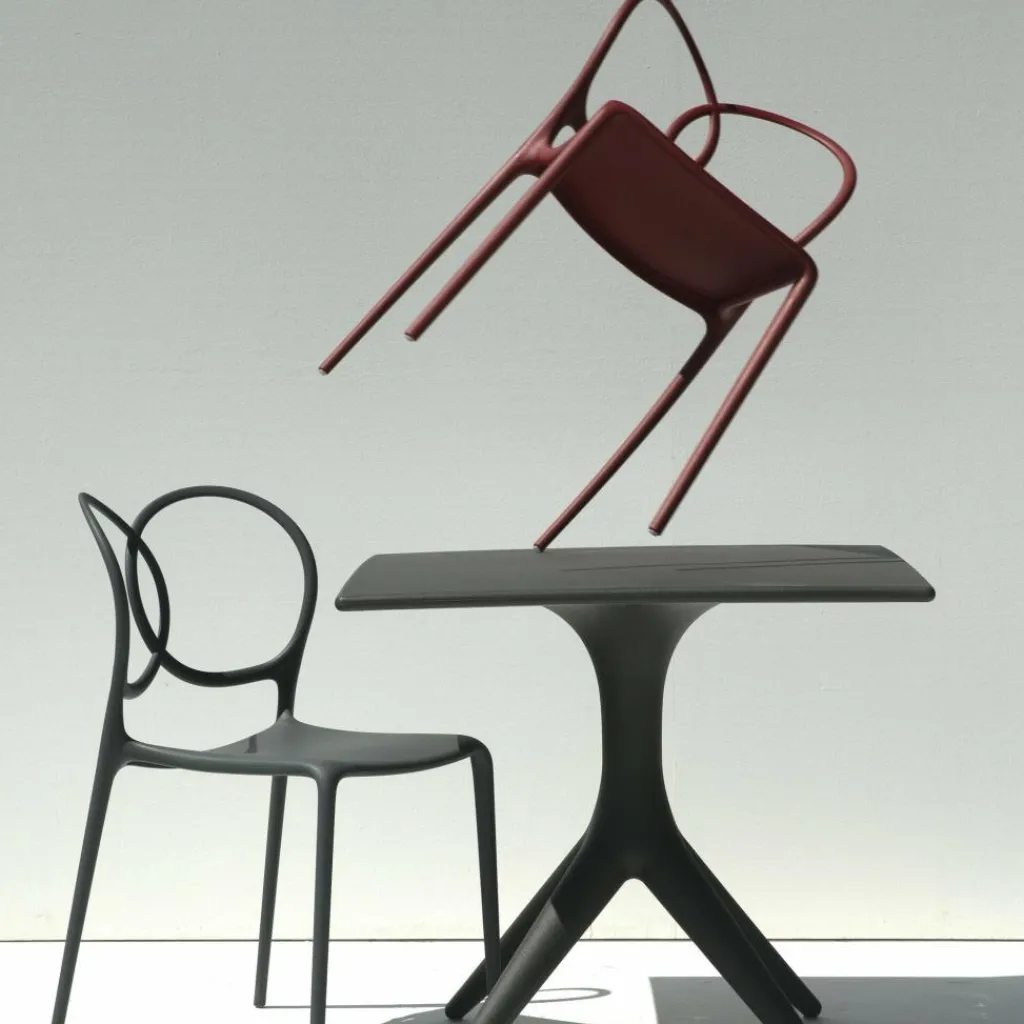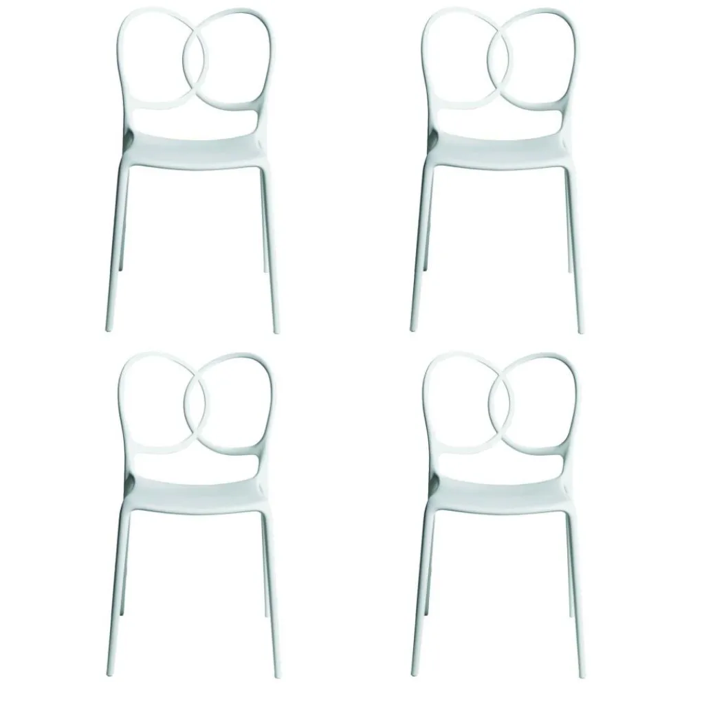 Das funktionale Sissi Gartenstuhl 4er Set wurde von den Designern Roberto Palomba und Ludovica Palomba für den Hersteller Driade entworfen. Das Ziel waren Sitzmöbel mit Charakter, die Vergangenheit und Zukunft zusammenführen. Dabei soll die Funktionalität ebenfalls einen wichtigen Faktor ausmachen. Das ist den Designern, die seit 1994 ihr eigenes Studio mit dem Namen Palomba Serafini Associati führen, bestens gelungen.