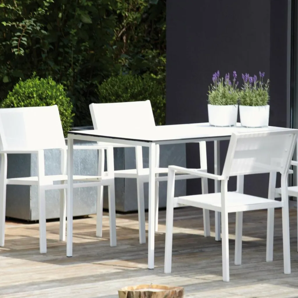 Zu den bevorzugten Einsatzgebieten dieser eleganten Sitzmöbel gehört ganz klar die sommerliche Terrasse. Mit ihren weißen Sitzflächen und Rückenlehnen strahlen Sie Ruhe, Harmonie und Eleganz gleichzeitig aus. Mit ihren Maßen von 57 x 85 x 45 cm sind sie dabei so kompakt gehalten, dass sie sich bescheiden und dezent in jedes Ambiente einpassen. Abgerundet wird die hochwertige Erscheinung der Designs durch die Materialauswahl. Die Cubic Gartenarmlehnstühle von Jan Kurtz bestehen aus Aluminium und Textilenen. So sind sie einerseits flexibel, andererseits auch besonders pflegeleicht..