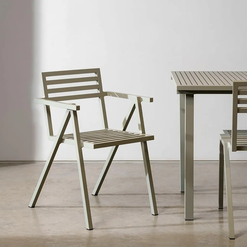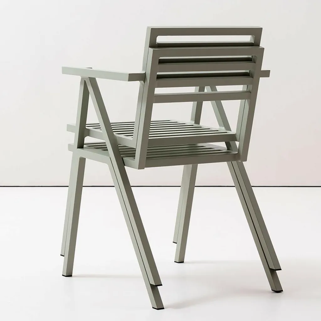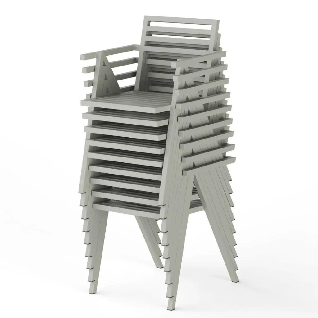 19 Outdoors Armlehnstuhl stapelbar. Dieses Produkt ist von Butterfield Brothers für die Marke Nine entworfen worden.