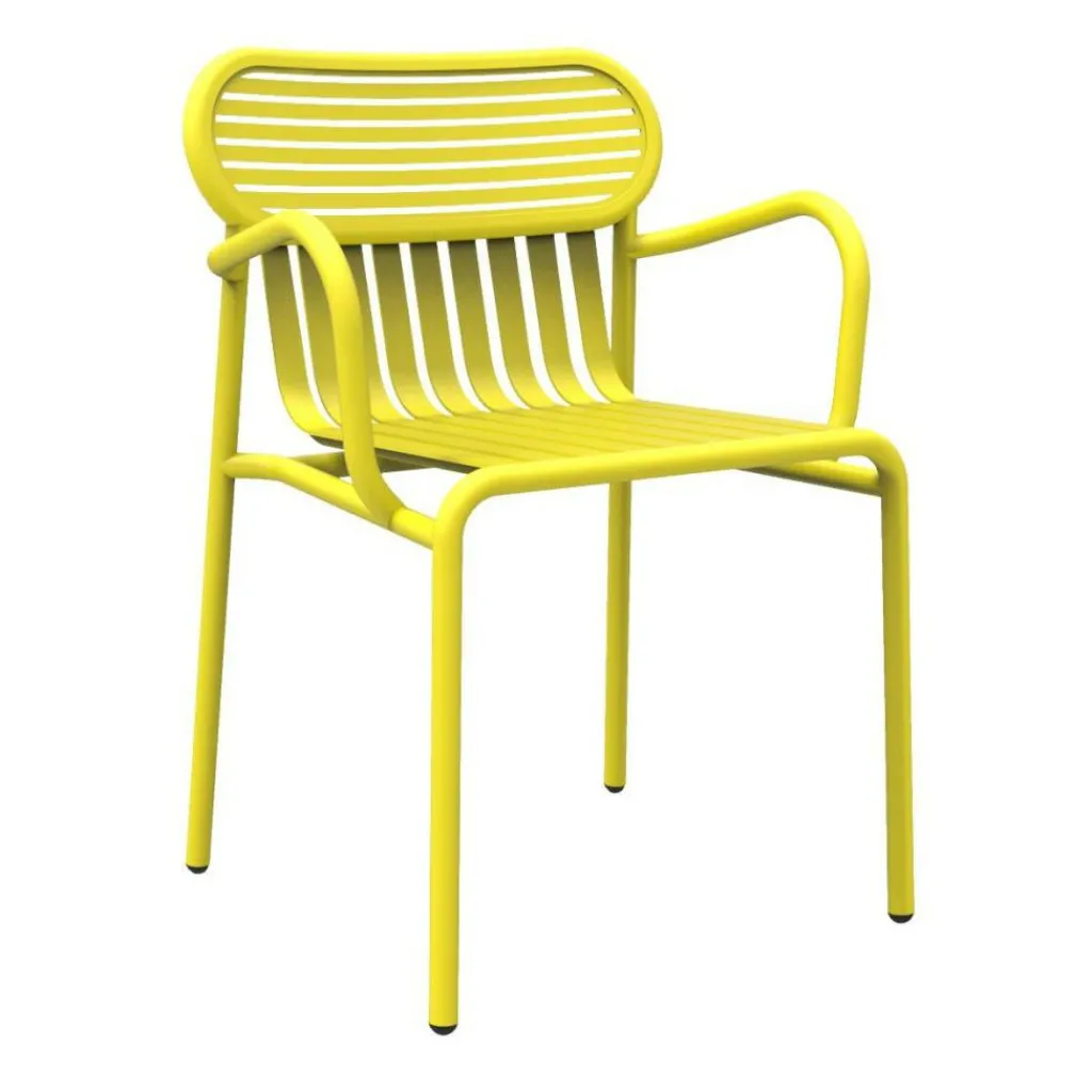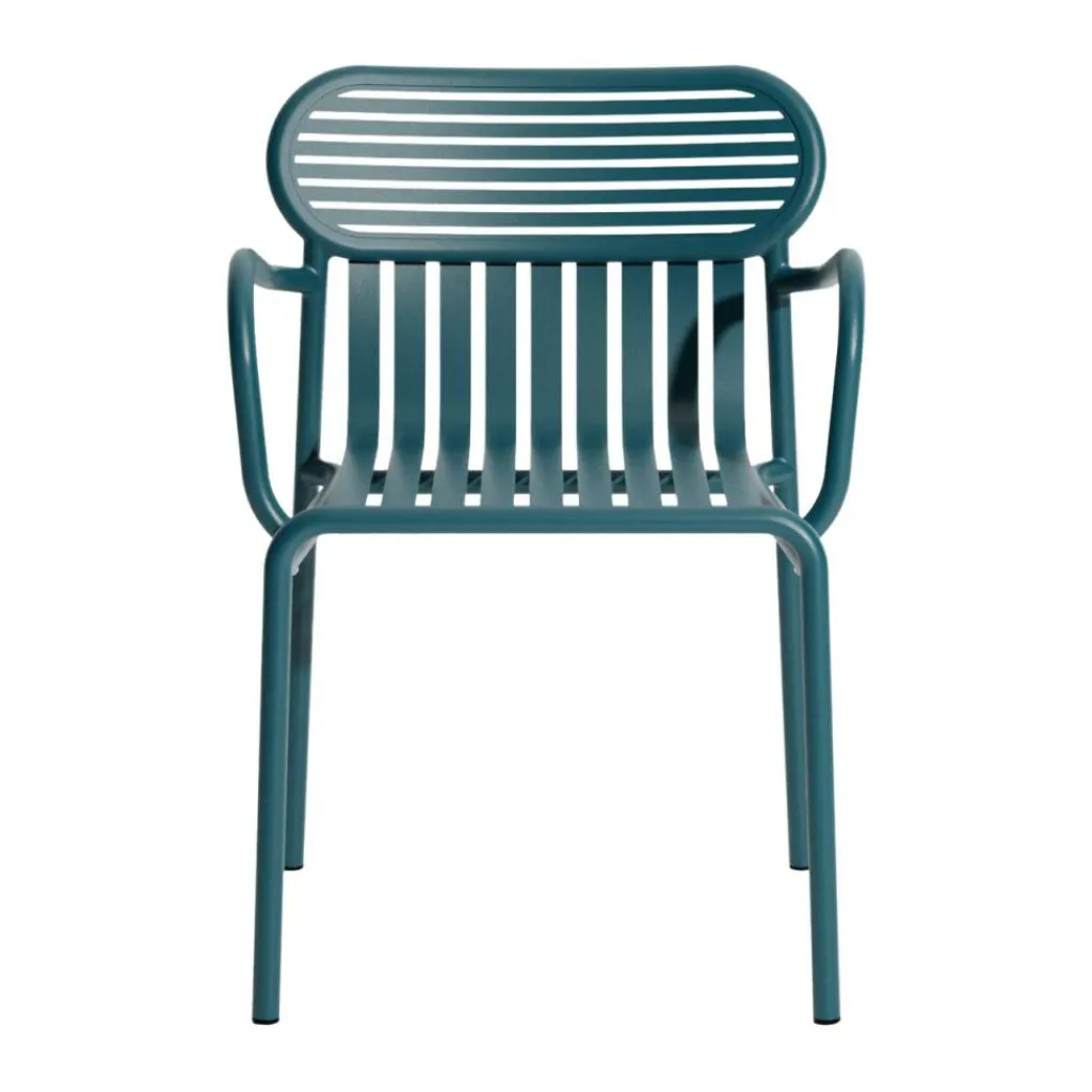 Mit den fast quadratischen Maßen von 57 x 50 cm sowie einer Höhe von 77 cm und einer Sitzhöhe von 45 cm zeigt sich der Week-End Bridge Gartenarmlehnstuhl als eine universell einsetzbare Sitzgelegenheit in Ihrem Zuhause. Ob auf der Terrasse oder im Wintergarten, der Stuhl von Petite Friture fügt sich dank seiner schlichten Formen und der fröhlichen Farbgebung harmonisch in fast jedes Umfeld ein. Er erlaubt sogar das Zusammenspiel mit unterschiedlichen Einrichtungsstilen im Outdoor-Bereich. Eine wichtige Rolle spielt dabei das hochwertige Aluminium, das den Stuhl leicht und unbeschwert wirken lässt.