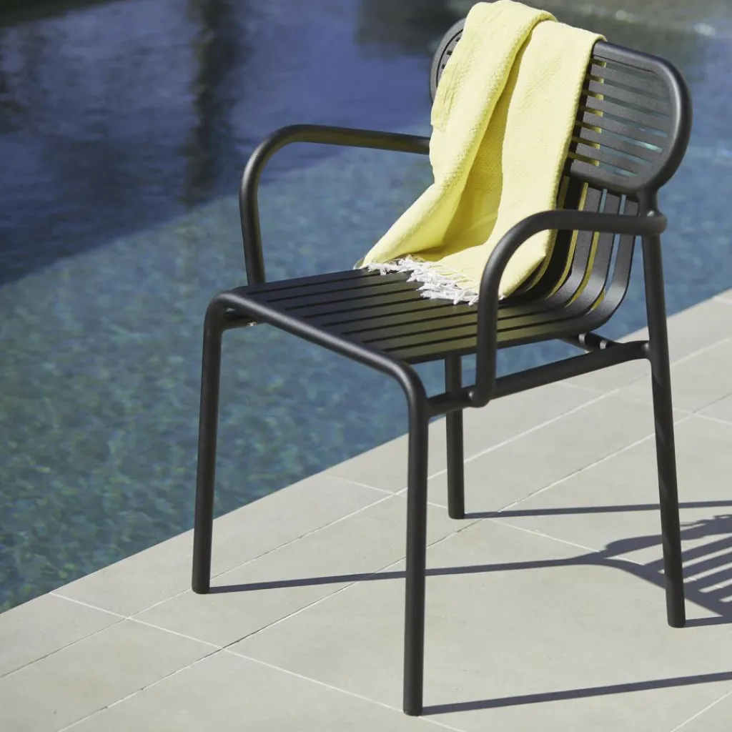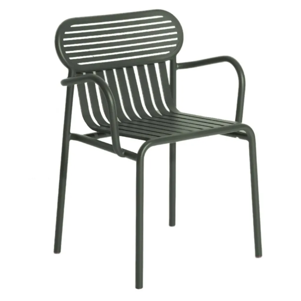 Der exklusive Week-End Bridge Gartenarmlehnstuhl wurde von BrichetZiegler für den Hersteller Petite Friture entworfen. Im Vordergrund standen neben der wichtigen Funktionalität eine solide Unempfindlichkeit gegen Witterungseinflüsse, eine gute Kombinierbarkeit mit den anderen Designermodellen der Week-End Reihe und eine warme und einladende Ausstrahlung.