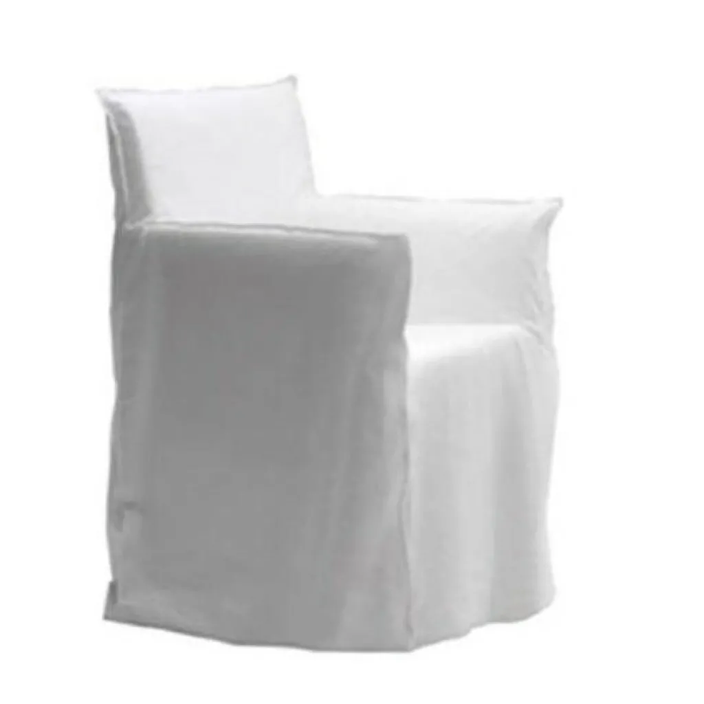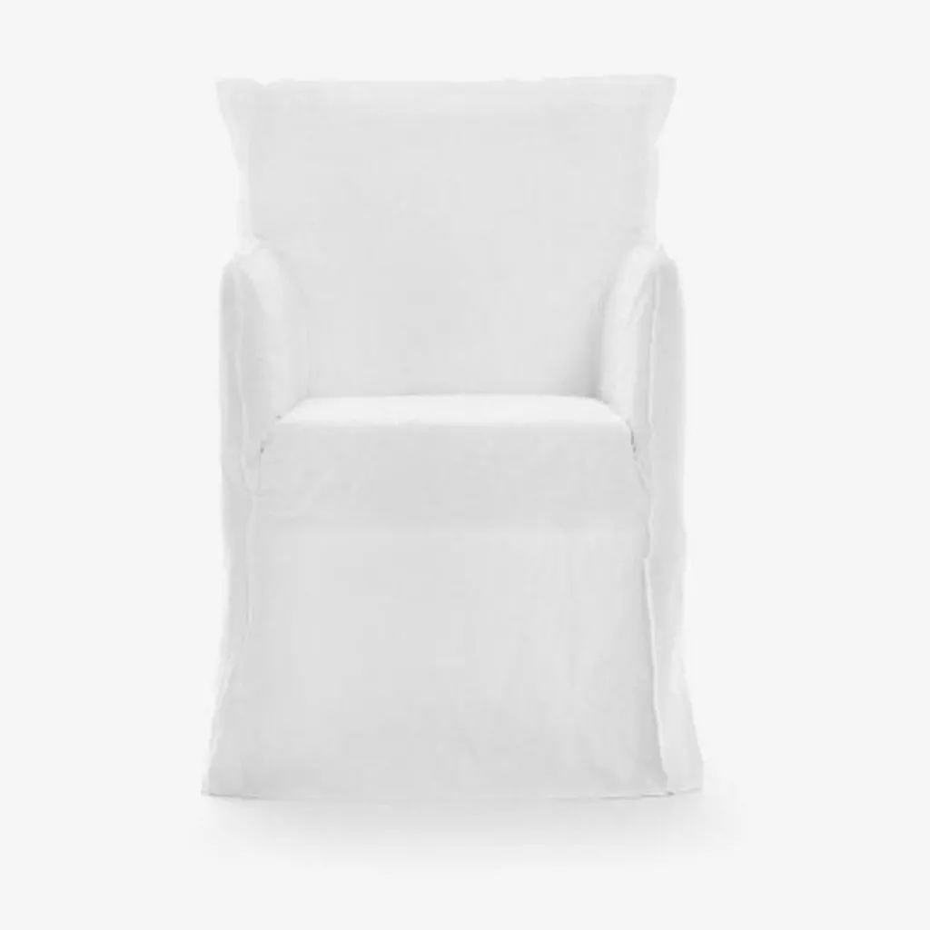 Der Ghost 25 Armlehnstuhl wurde von Paola Navone für die Marke Gervasoni entworfen. Er ist Bestandteil einer umfangreichen Serie an Sitzgelegenheiten, die sich mit ihrem luftigen Design auszeichnet. Zum Markenzeichen werden Stuhlhussen, die bis zum Boden gezogen sind. Somit entsteht der Eindruck, als ob es sich um ein Gespenst handele.