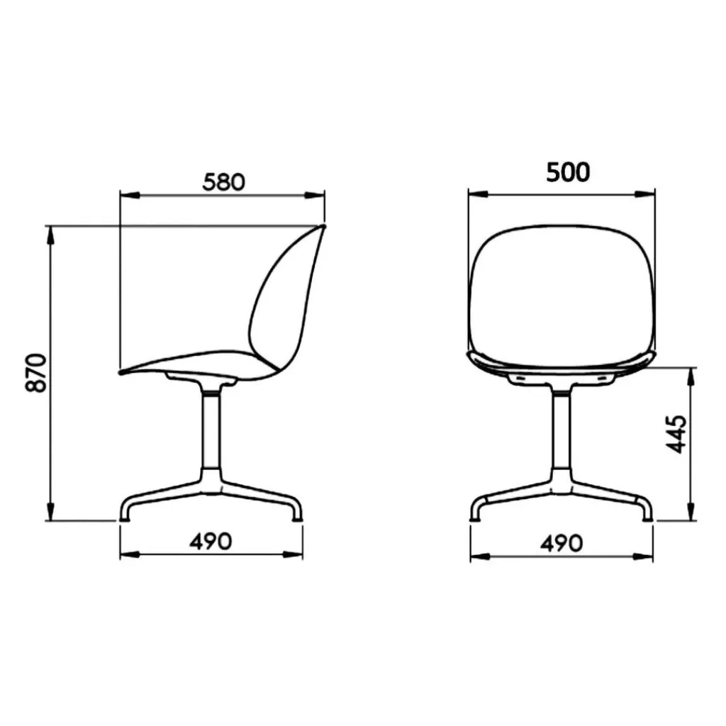 Der Beetle Meeting Stuhl Gestell 4-Stern drehbar ist ein elegant-schlichter Esszimmerstuhl, dessen Drehfunktion Ihnen ein kommunikatives Miteinander erlaubt. Die großzügig dimensionierte Sitzschale sorgt für eine äußerst bequeme und entspannte Sitzposition. Die auf wesentliche Elemente reduzierte Form schafft Funktionalität, ohne auf ein hohes Maß an Ästhetik zu verzichten.