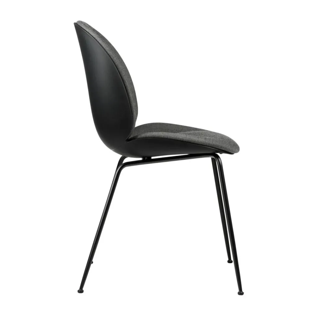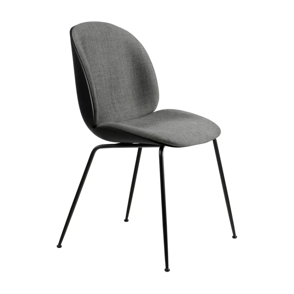 Beim Design ließen sich GamFratesi von der Natur inspirieren: Der Beetle Schalenstuhl Frontpolsterung Gestell konisch wurde dem harten Panzer und den filigranen Beinen von Käfern nachempfunden. Dje beiden hinteren Beine weisen einen markanten Knick an der Rückseite der Sitzfläche auf. Das Gestell wird aus Stahl gemacht, Plastikgleiter an den Füßen sind Standard. Für die Sitzschale verwenden die Designer Polypropylen. Das Material kann zu 100 Prozent recycelt werden. Die Vorderseite der Sitzschale ist mit Schaumstoff gepolstert. Beim Bezug gibt es verschiedene Varianten an Farben und Materialzusammensetzungen. Es gibt Modelle mit Stoff aus 70 Prozent Schurwolle und 30 Prozent Viskose, andere sind zu 90 Prozent aus Schurwollen-Kammgarn und zu 10 Prozent Nylon gefertigt. Es gibt auch einen Bezug aus 40 Prozent Viskose, 30 Prozent Wolle, 20 Prozent Leinen und 10 Prozent Nylon.