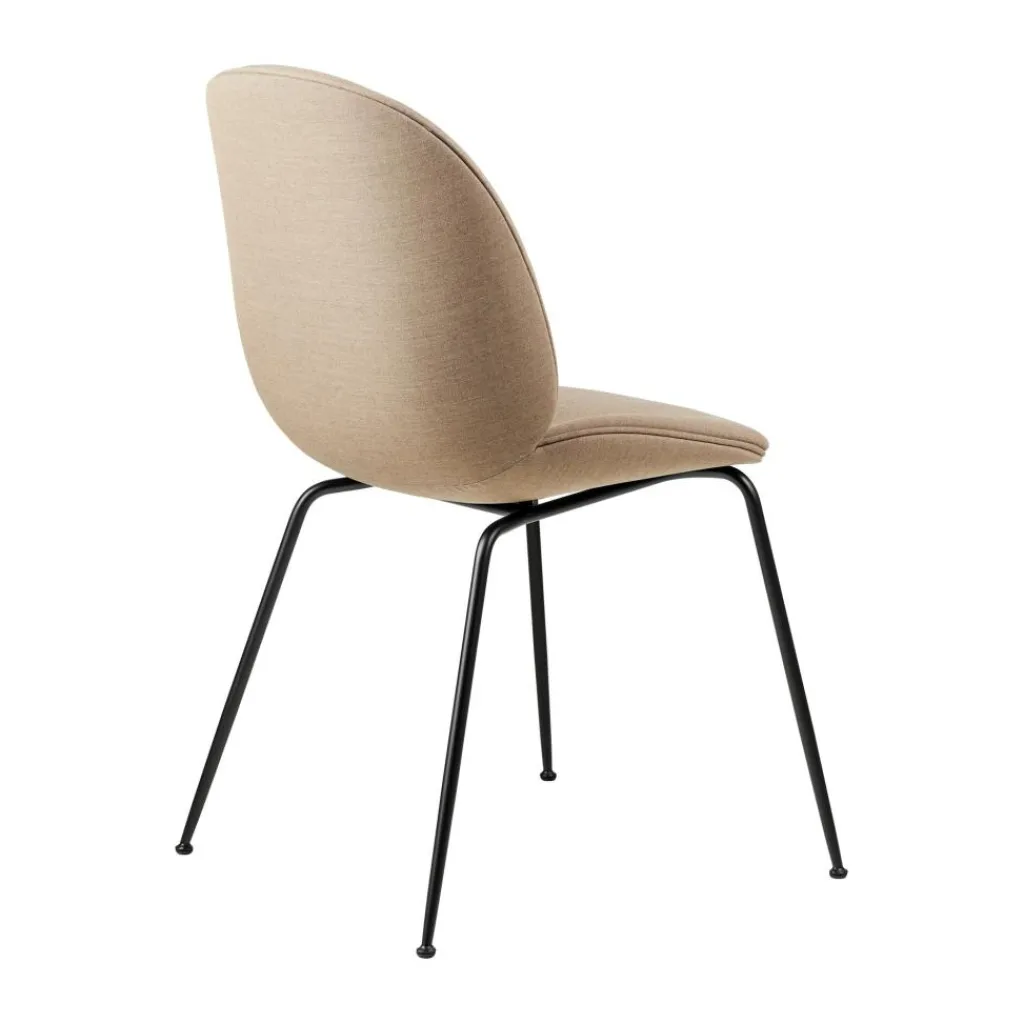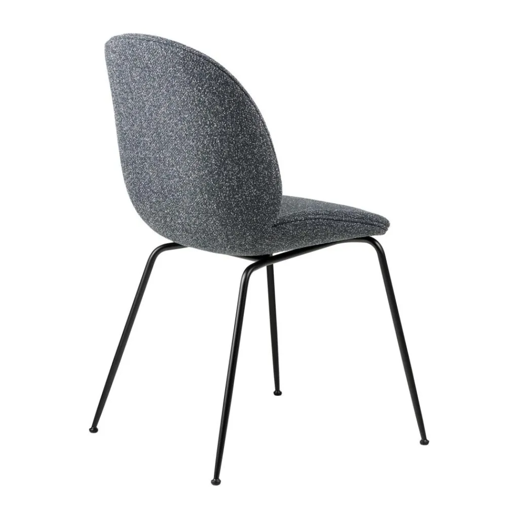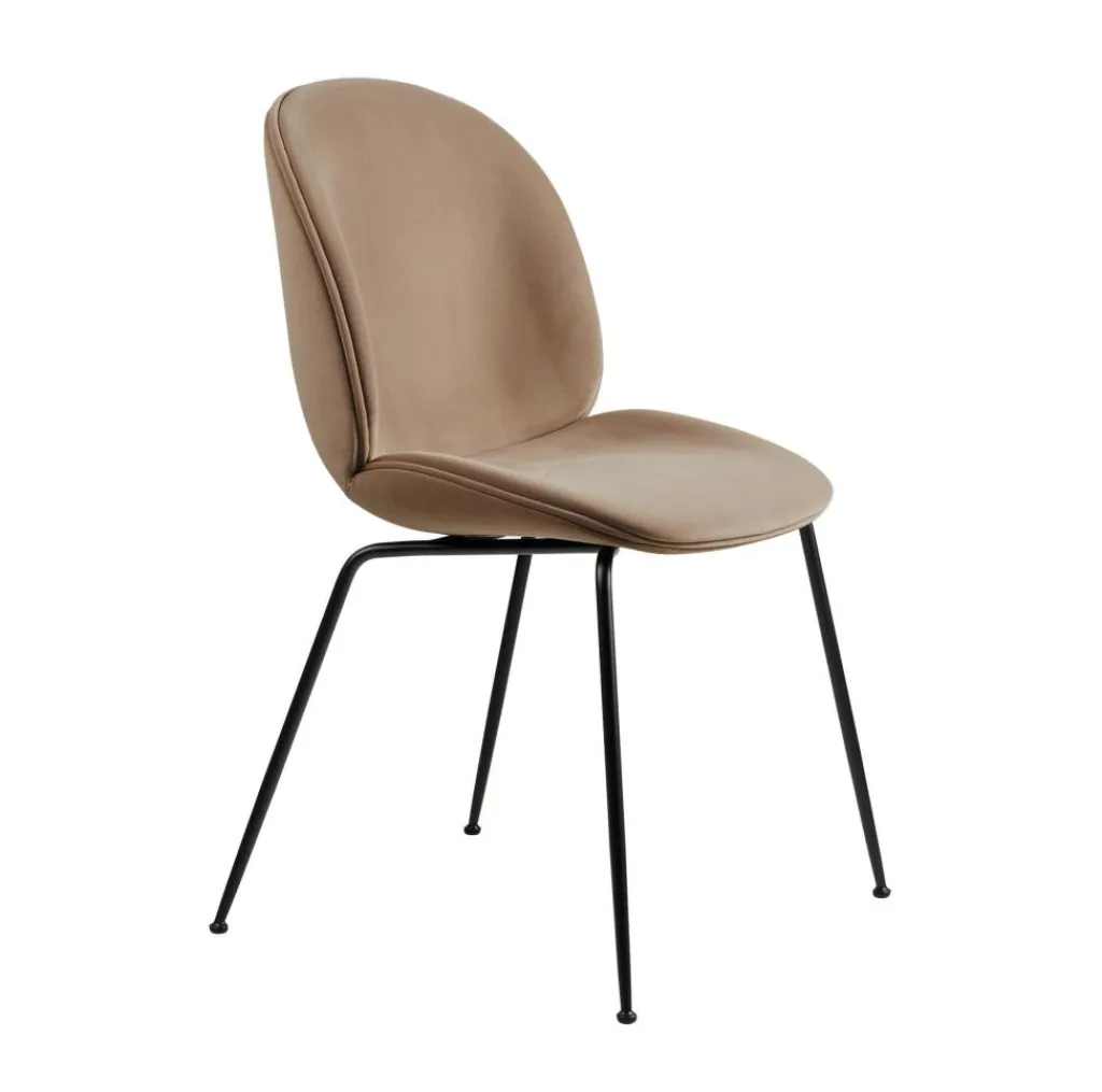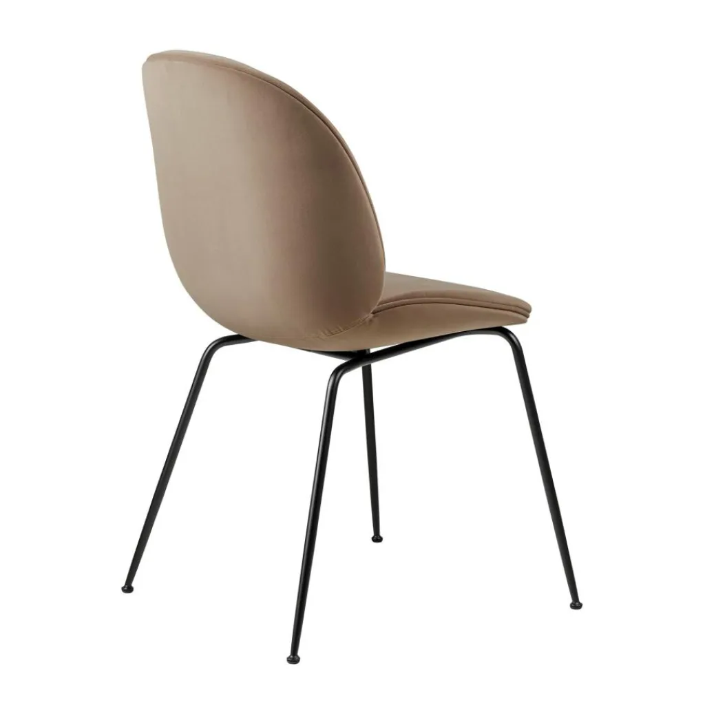 Der Beetle Schalenstuhl Vollpolsterung Gestell konisch wurde von GamFratesi für die Marke Gubi entworfen. Die Idee kam dem Designerduo, als sie an Käfer dachten. Daher rührt auch der Name. Die Sitzschale ist einem Panzer der Insekten nachempfunden und das filigrane Gestell erinnert an die Beine der Insekten.