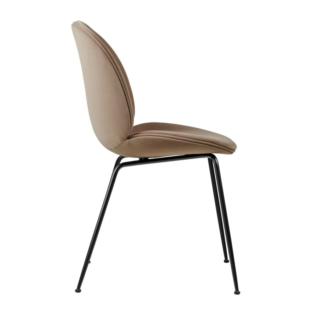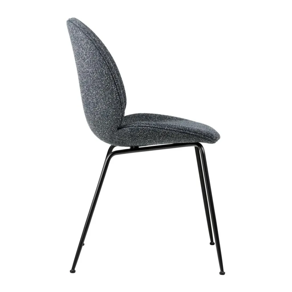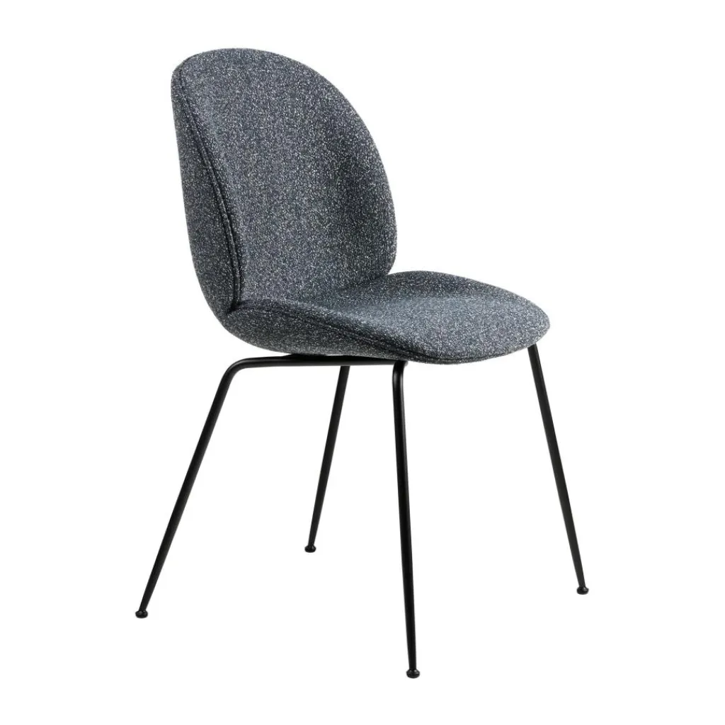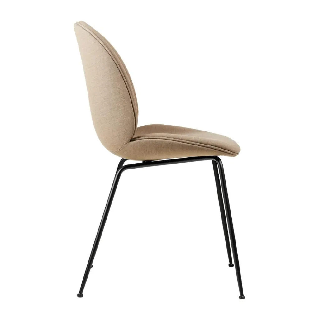 Der Beetle Schalenstuhl Vollpolsterung Gestell konisch wurde von GamFratesi für die Marke Gubi entworfen. Die Idee kam dem Designerduo, als sie an Käfer dachten. Daher rührt auch der Name. Die Sitzschale ist einem Panzer der Insekten nachempfunden und das filigrane Gestell erinnert an die Beine der Insekten.