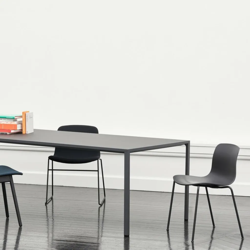 Der Entwurf der Sitzschale verfolgt zwei Ziele: optimalen Sitzkomfort und platzsparende Stapelbarkeit. Der Sitz ist aus dünnem Polypropylen gefertigt, das bei Belastung ein sanftes Zurückfedern erlaubt und gleichzeitig dem Körper einen stabilen Halt gibt. Abgerundete Ränder verleihen dem About a Chair AAC 16 2.0 Stuhl einen einladenden Charakter und schaffen zusammen mit dem filigranen, pulverbeschichteten Stahlgestell eine leichte, elegante Optik. Gleichzeitig garantieren die ausgestellten Stuhlbeine mit Kunststoffgleitern einen stabilen Stand. Hergestellt aus recyceltem Kunststoff zeichnet sich der Designstuhl als nachhaltiges Produkt aus. Er eignet sich für die Bestuhlung eines Vortragssaals, passt in den Wartebereich in öffentlichen Gebäuden und macht sich ebenso gut am Konferenztisch im Büro wie im Wohnzimmer daheim.
