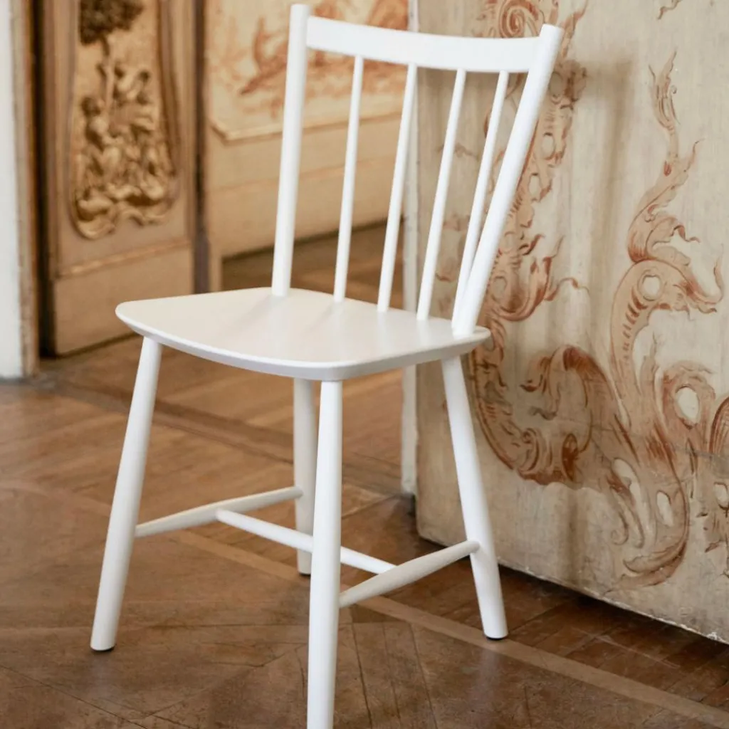 Der J41 Stuhl Buche hat ein Gewicht von 6,2 kg. Das Modell ist 46,5 cm breit und 48 cm tief. Die Höhe beträgt 82,5 cm. Die stilvolle Sitzgelegenheit hat eine Sitzhöhe von 44,5 cm. Es gibt den J41 Stuhl Buche in verschiedenen Farben. Passend dazu sind Sitzkissen erhältlich. Aus derselben Kollektion gibt es auch Armlehnstühle und Modelle aus anderen Holzsorten.
