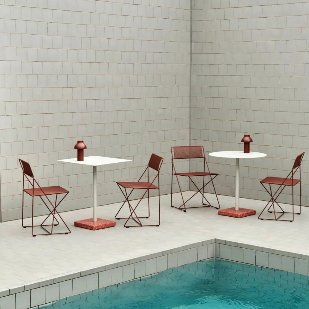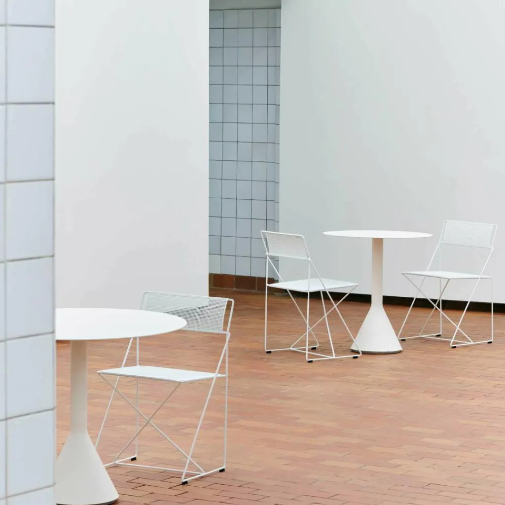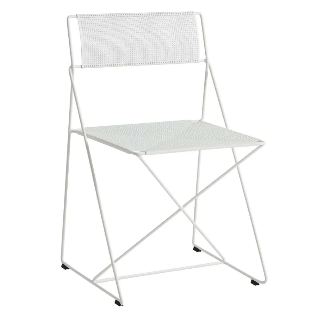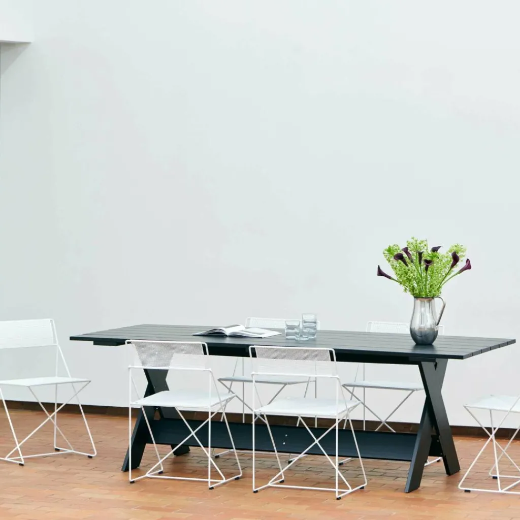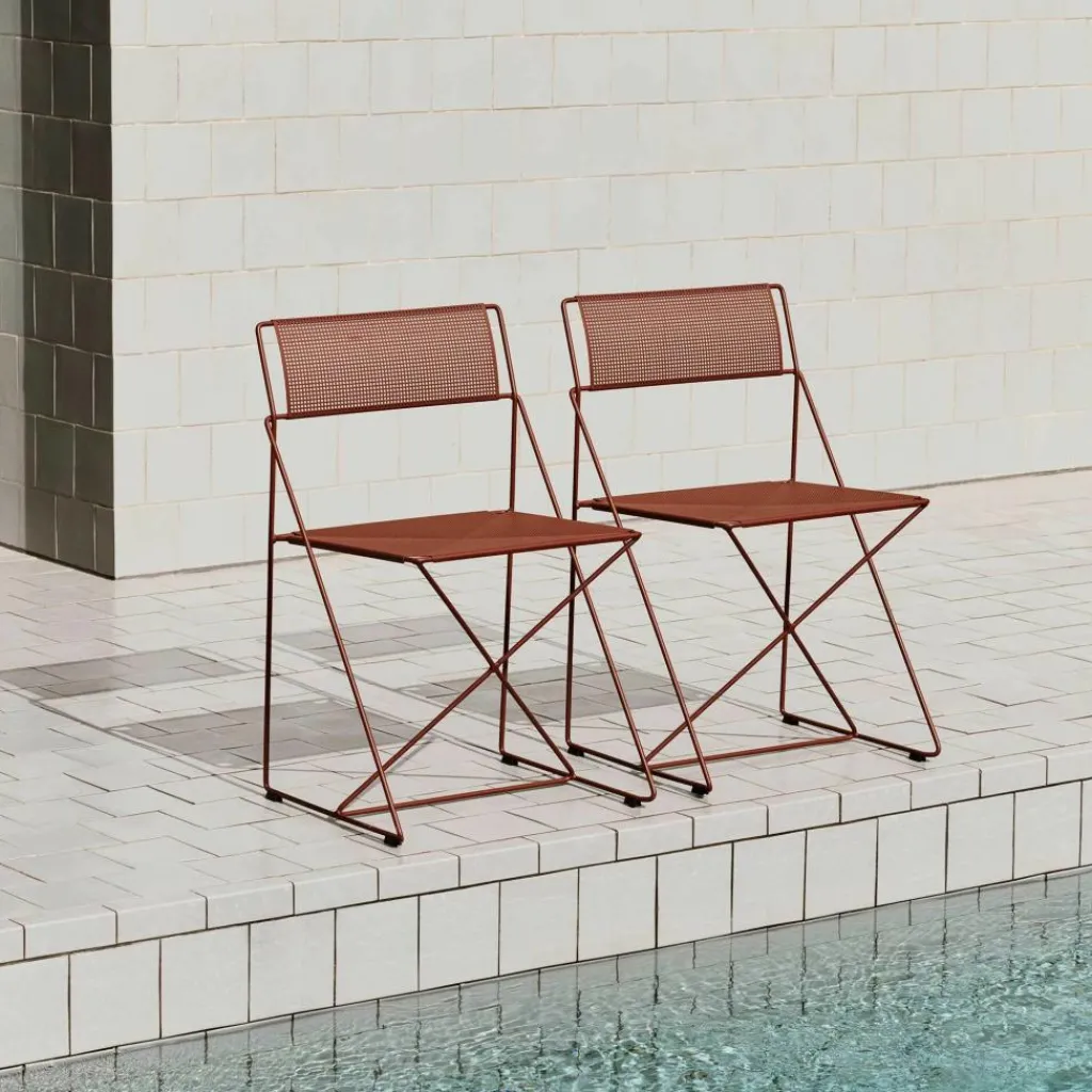 Der X-Line Gartenstuhl von HAY, entworfen vom dänischen Architekten und Designer Niels Jørgen Haugesen in den 1970er-Jahren, ist ein zeitloses Meisterwerk des minimalistischen Designs.