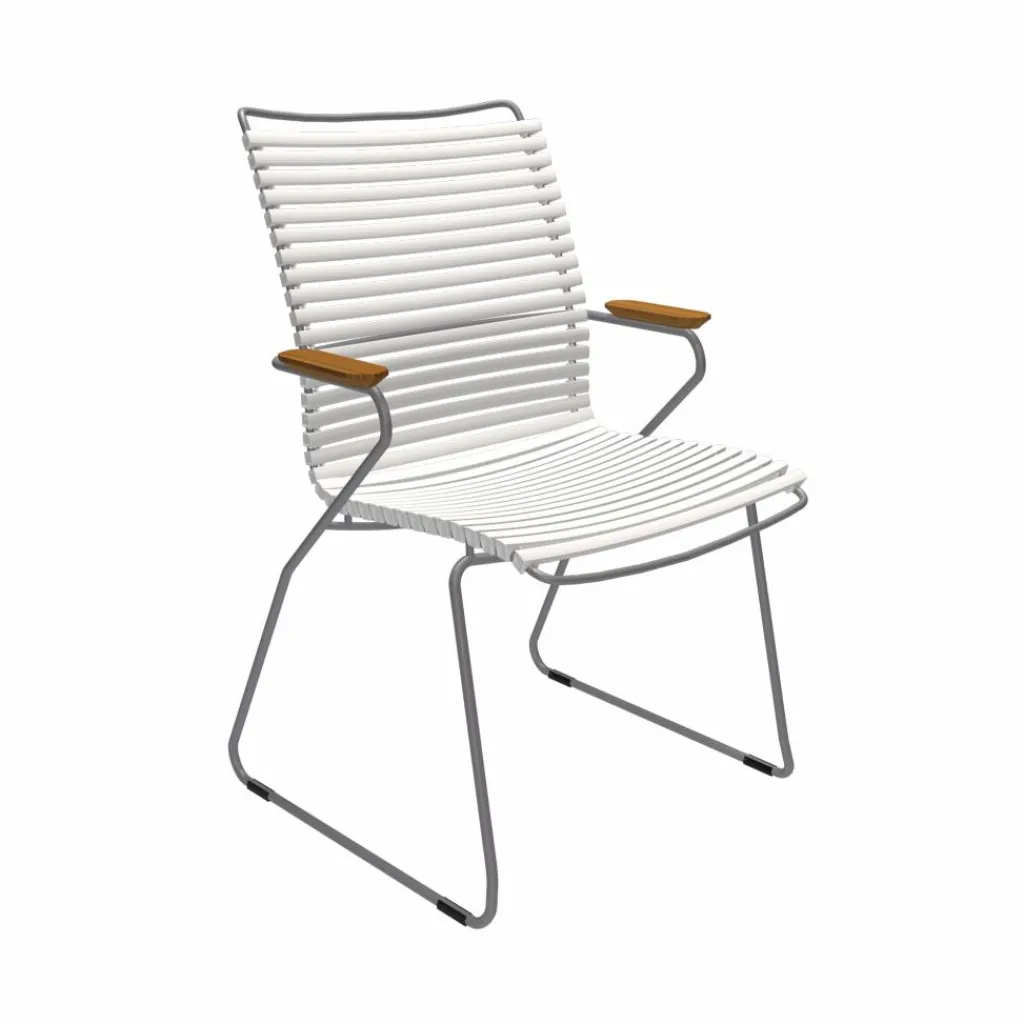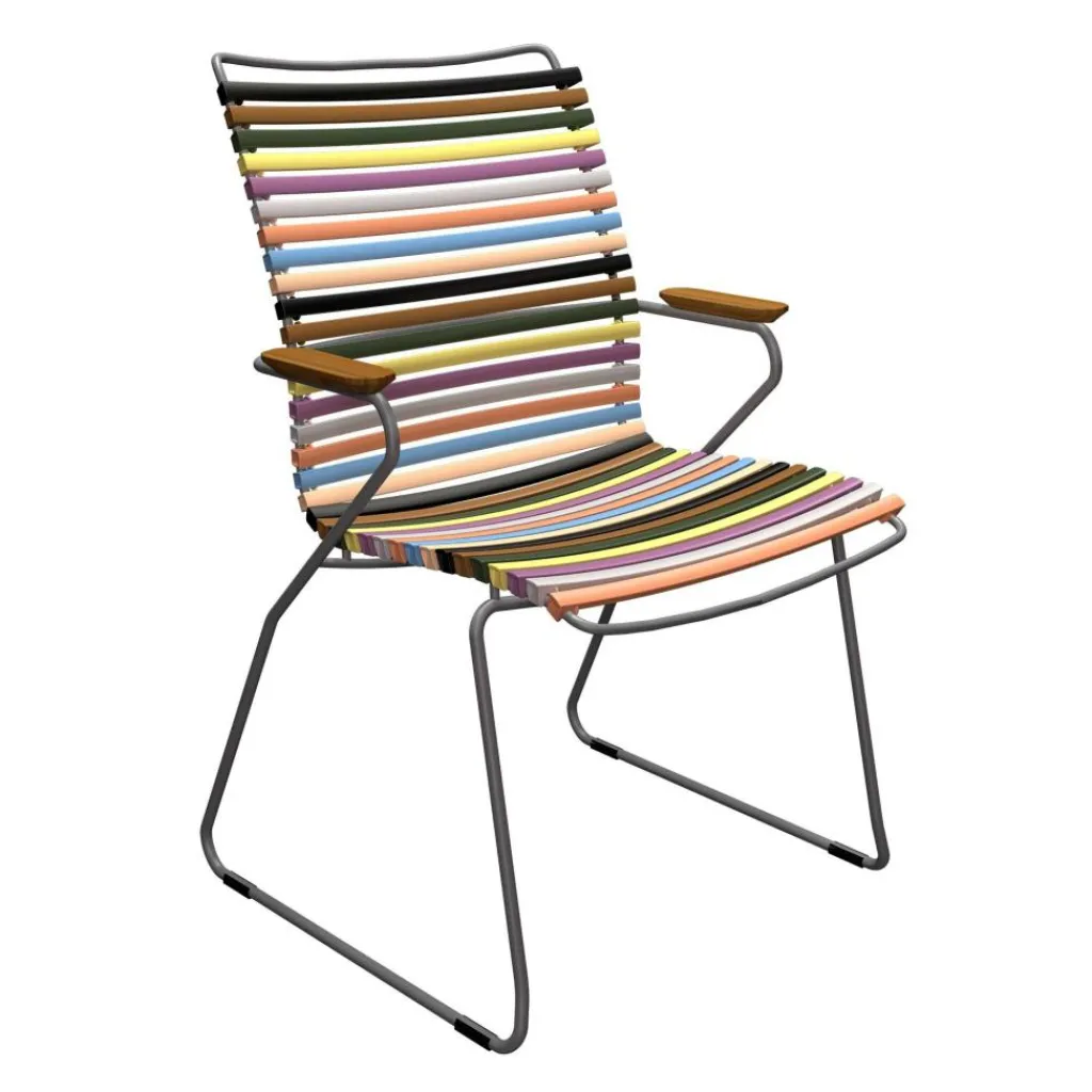 Der Click Outdoor Armlehnstuhl mit hoher Lehne ist in verschiedenen Farben erhältlich. Entdecken Sie auch die weiteren vielseitigen Kollektionen von HOUE und gestalten Sie Ihre persönliche Outdoor-Oase mit stilvollen, wetterfesten Möbeln.