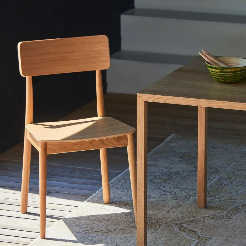 Um eine optimale Standfestigkeit zu garantieren, ist das Gestell aus massiver, geölter Eiche angefertigt. Die Rückenlehne und die Sitzfläche bestehen aus Schichtholz. Mit seiner Holzoptik bringt der Yoki Stuhl einen Hauch von natürlicher Frische in Ihren Wohnbereich. Egal ob als Sitzgelegenheit im Esszimmer oder als Schreibtischstuhl, als Solitär oder im Ensemble, er macht immer eine ausgezeichnete Figur.