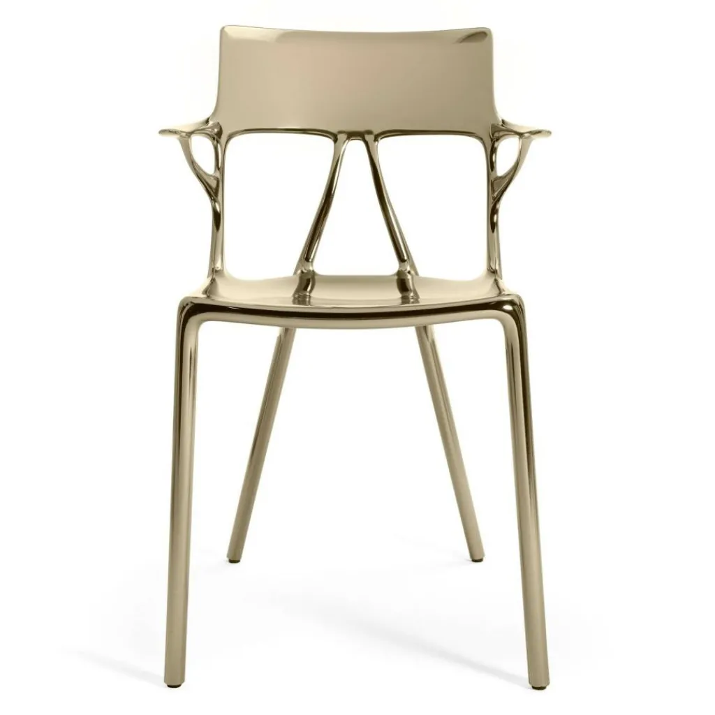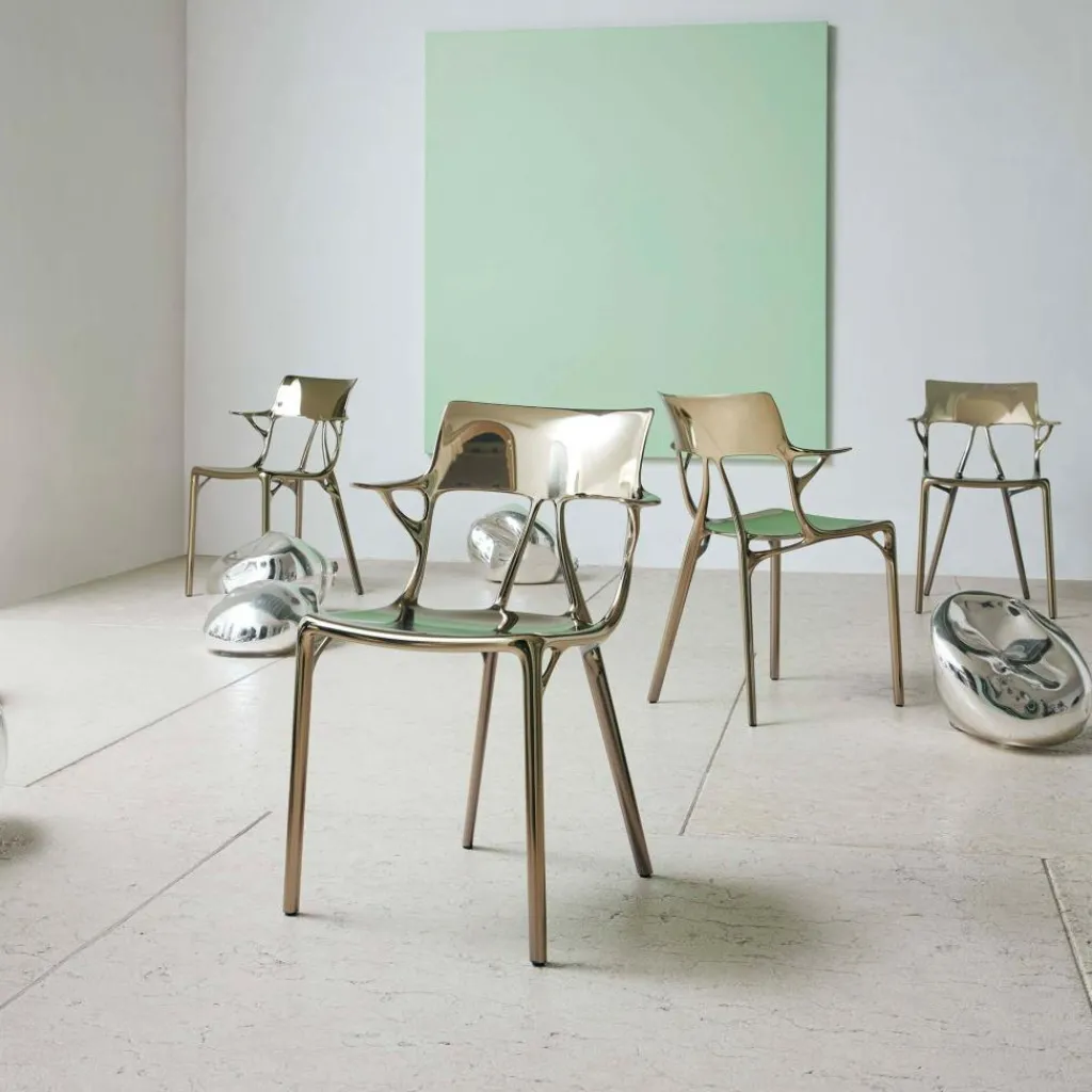Der AI Metal Armlehnstuhl wurde von Philippe Starck für die Marke Kartell entworfen. Das außergewöhnliche Modell wurde im Jahr 2020 mit dem begehrten Red Dot Award ausgezeichnet.