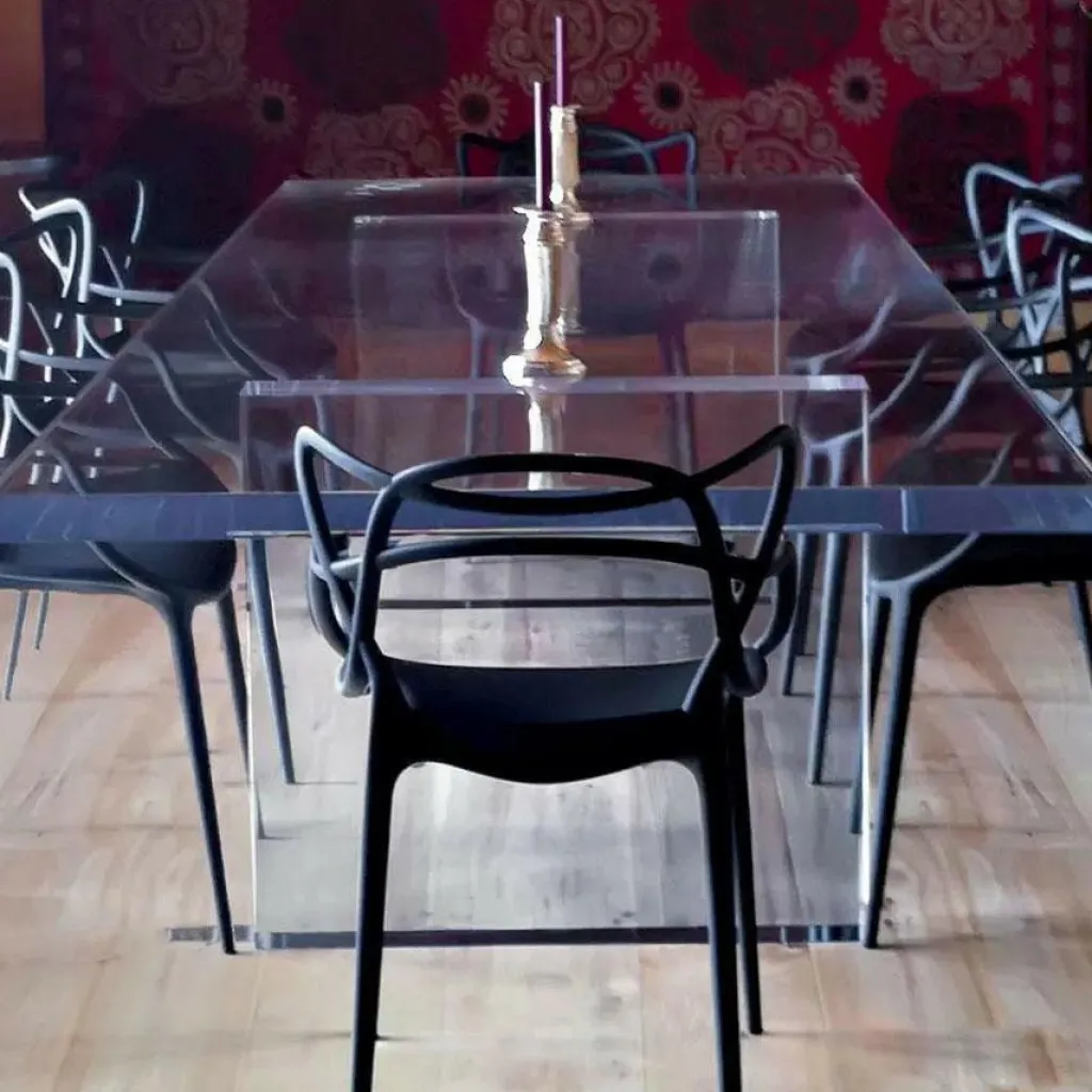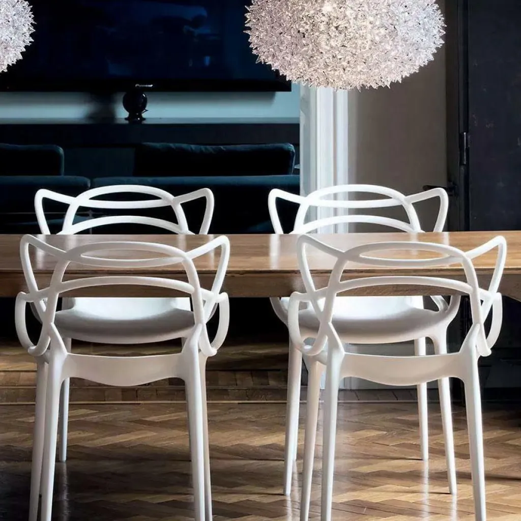 Der Masters Armlehnstuhl wurde von Philippe Starck und Eugeni Quitllet für die Marke Kartell entworfen. Das Modell ist eine Hommage des französischen Stardesigners auf drei berühmte Sitzgelegenheiten: Es vereint die Vorzüge der ‚Serie 7‘ von Arne Jacobsen mit Elementen des ‚Tulip Armchair‘ von Eero Saarinen. Dazu kommen Elemente des ‚Eiffel Chair‘ von Charles Eames. Der Entwurf erhielt bereits zahlreiche Auszeichnungen wie den Good Design Award im Jahr 2010 oder den Red Dot Design Award im Jahr 2013.