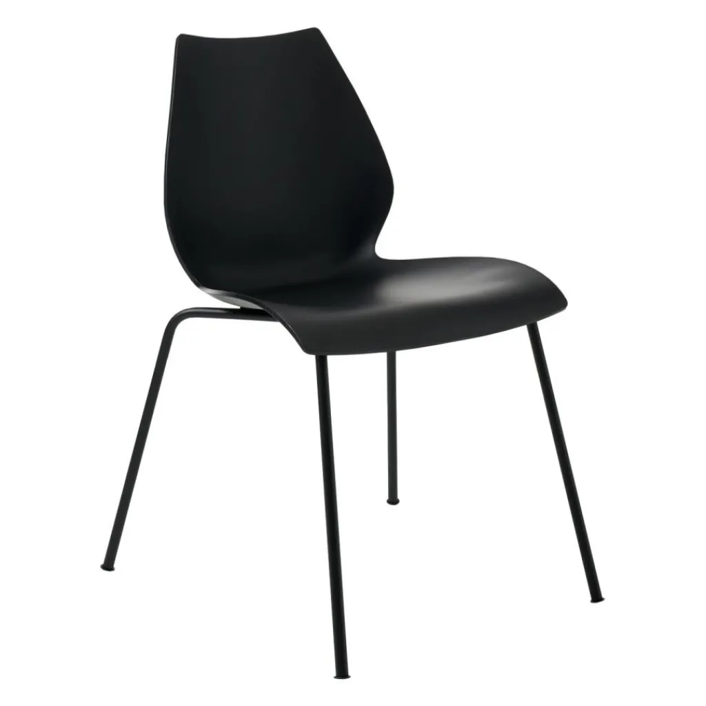 Der Maui Stuhl Gestell Stahlrohr schwarz lackiert wurde von Vico Magistretti für die Marke Kartell entworfen. Die Maui-Stuhlfamilie umfasst Sitzgelegenheiten in verschiedenen Farben und Ausführungen. Gemeinsam ist ihnen das minimalistische Design, das aus der Feder des ehemaligen Industriedesigners Magistretti stammt. Es sind auch gepolsterte Modelle und Stühle mit Armlehnen aus derselben Serie erhältlich.