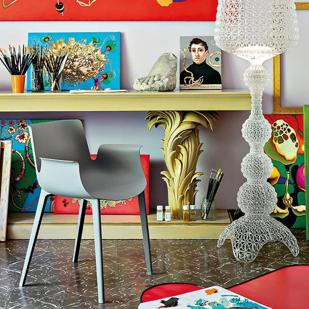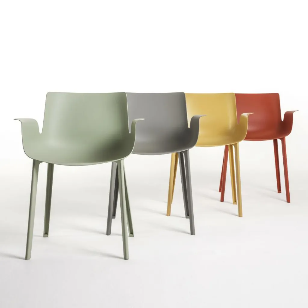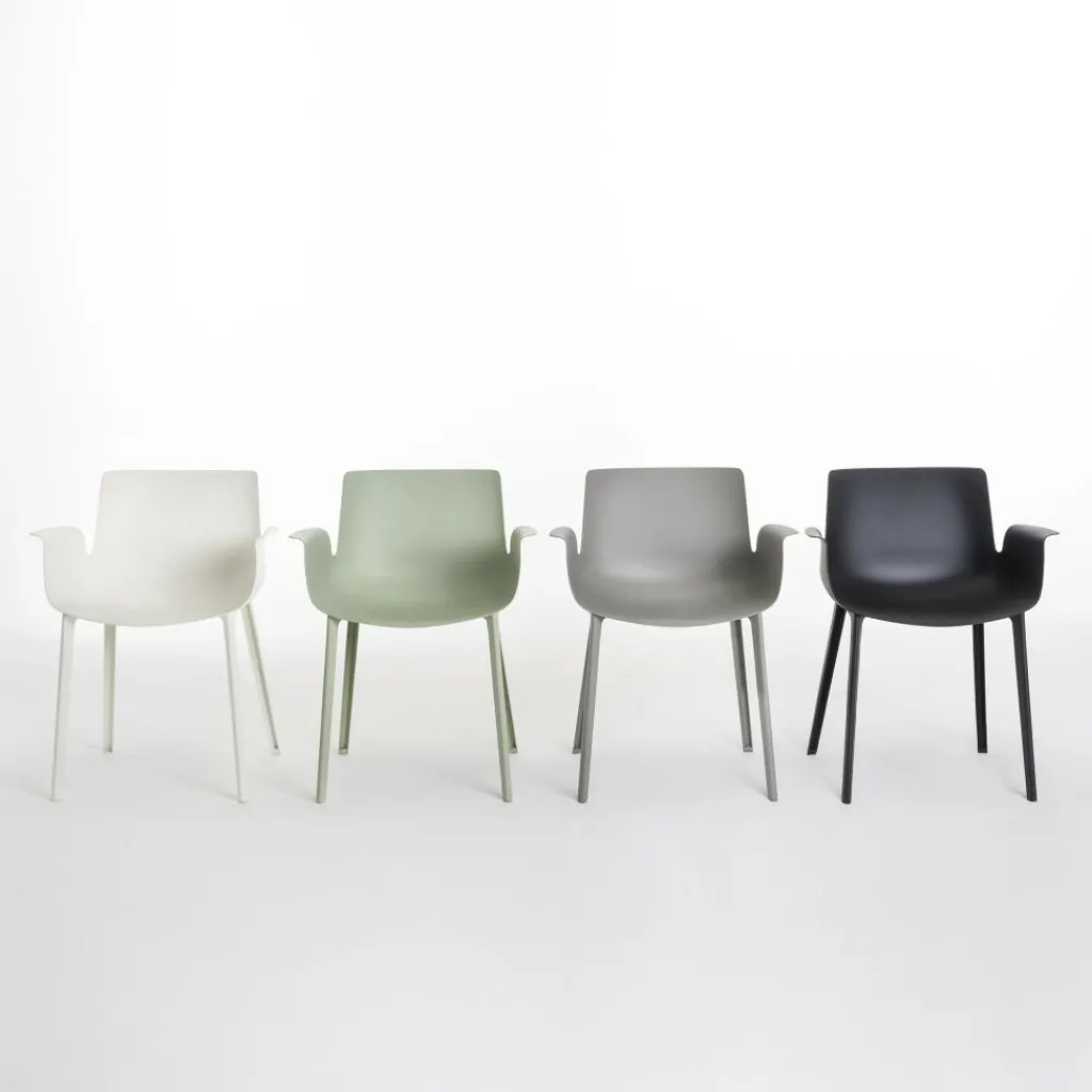 Der elegante Piuma Armlehnstuhl wurde von Designer Piero Lissoni für den Hersteller Kartell entworfen. Bei dem Piuma handelt es sich um einen der revolutionärsten Stühle von Kartell. Hergestellt wird er in einem speziellen Spritzgussverfahren, das extra für diesen Designerstuhl entwickelt wurde. Dadurch konnte die Sitzfläche auf nur wenige Millimeter Stärke reduziert werden, wodurch ein ultraleichter Stuhl entstanden ist.