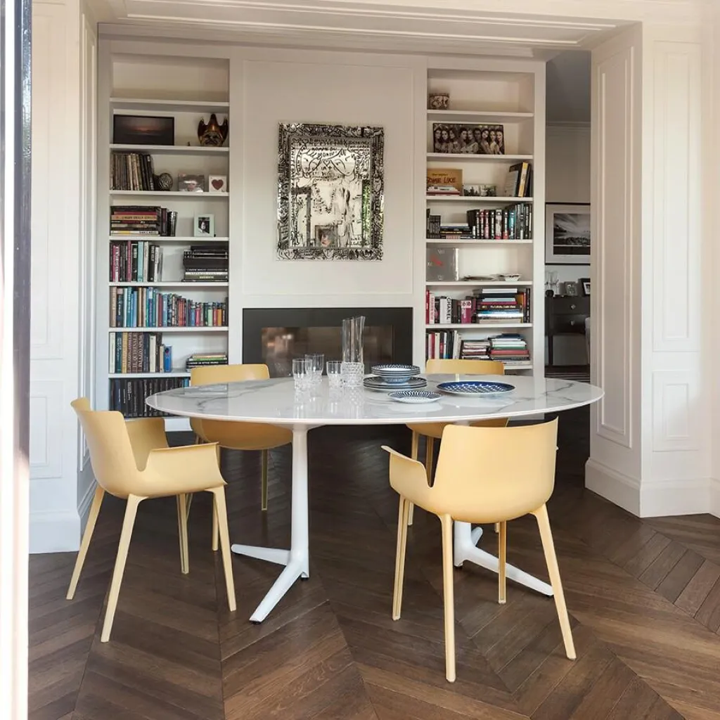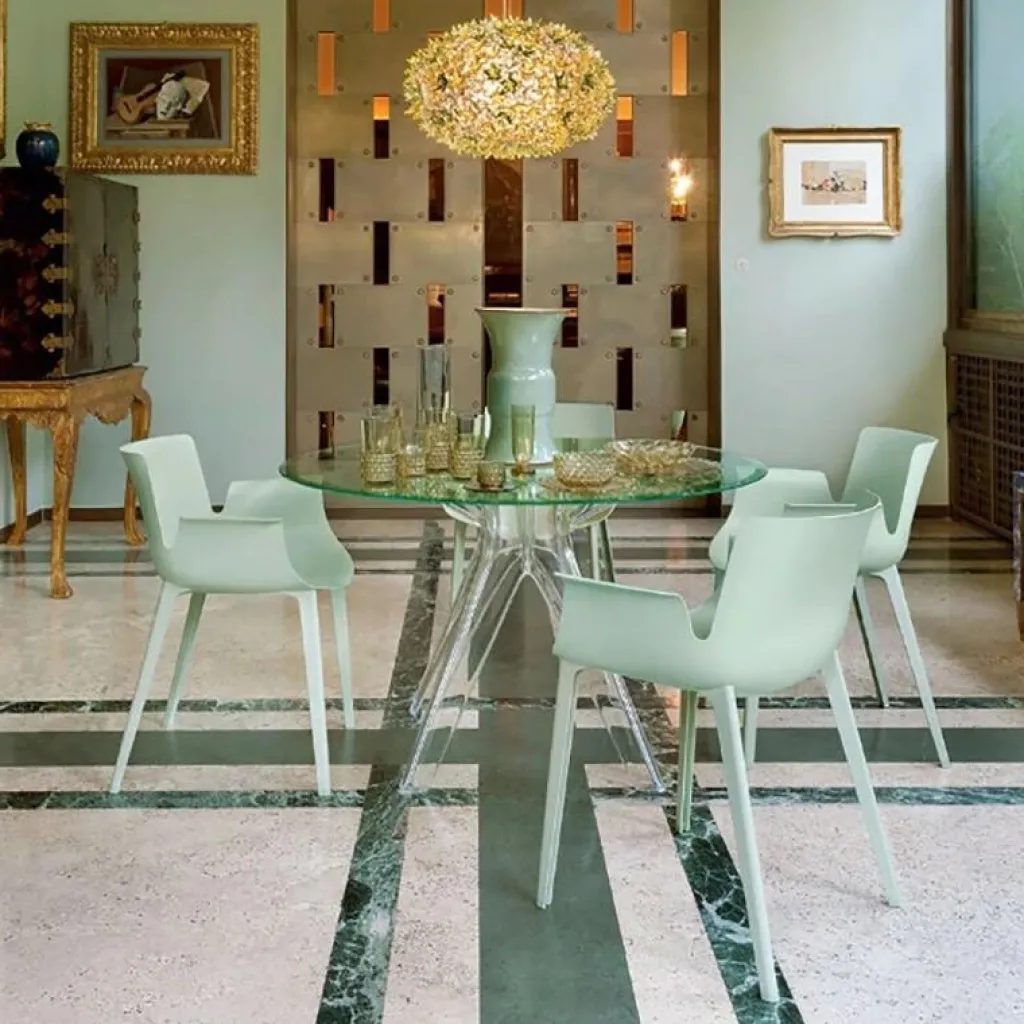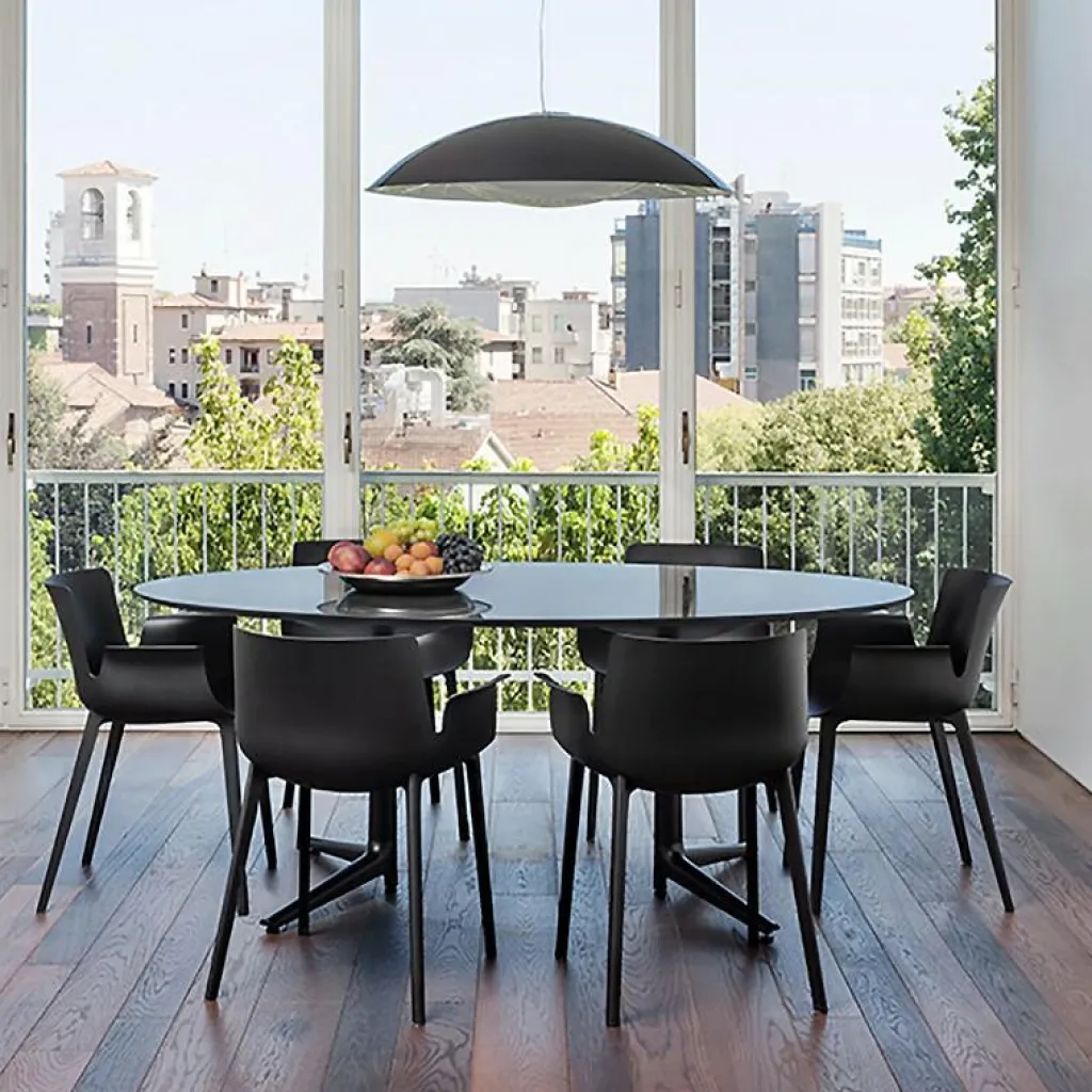 Der elegante Piuma Armlehnstuhl wurde von Designer Piero Lissoni für den Hersteller Kartell entworfen. Bei dem Piuma handelt es sich um einen der revolutionärsten Stühle von Kartell. Hergestellt wird er in einem speziellen Spritzgussverfahren, das extra für diesen Designerstuhl entwickelt wurde. Dadurch konnte die Sitzfläche auf nur wenige Millimeter Stärke reduziert werden, wodurch ein ultraleichter Stuhl entstanden ist.