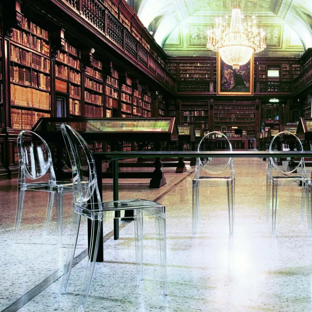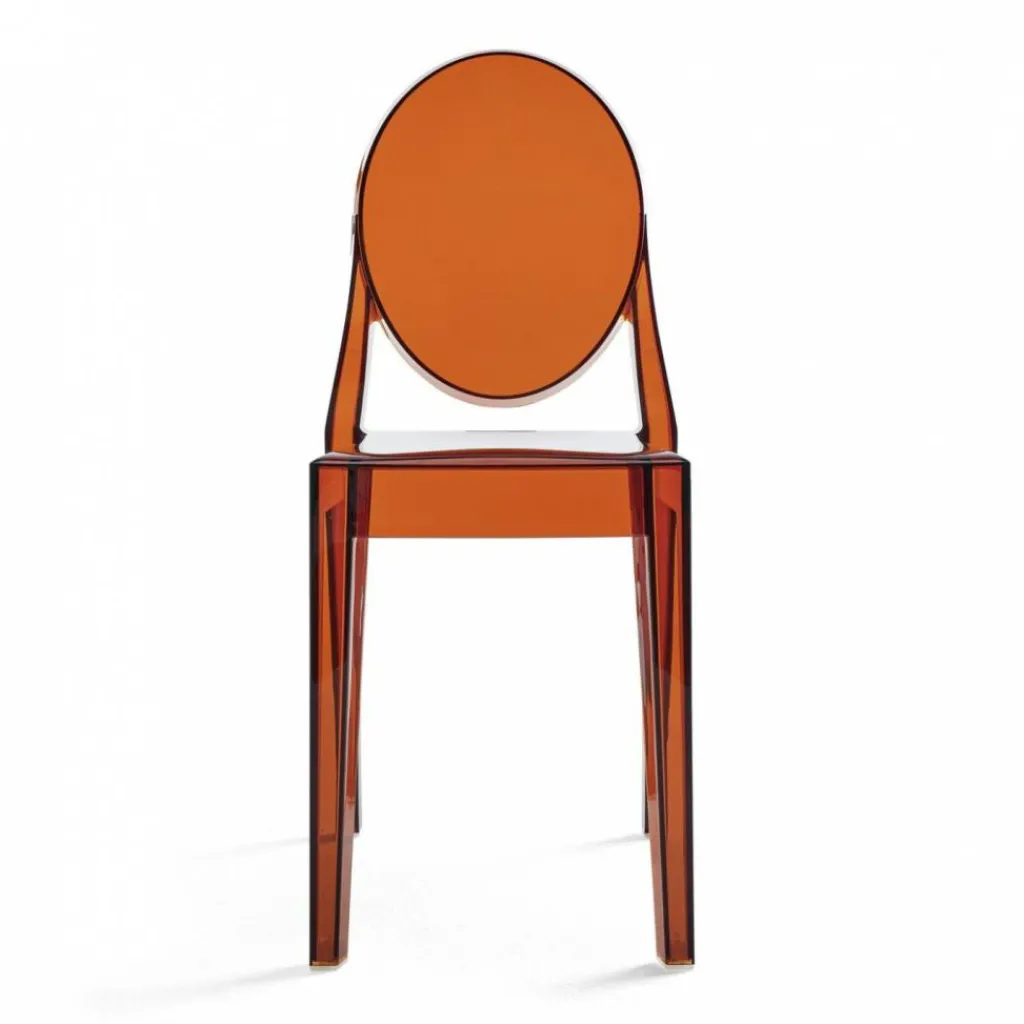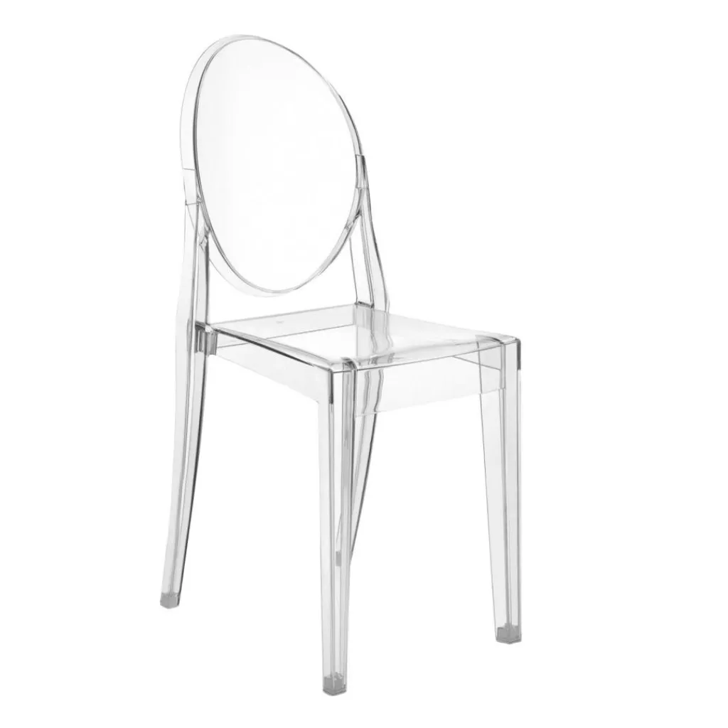 Der Victoria Ghost Stuhl wurde von Philippe Starck für die Marke Kartell entworfen. Damit bringt die Marke Kartell ein feminines Pendant zum begehrten Stuhl Louis Ghost heraus. Besonders außergewöhnlich sind die Modelle aus transparentem Material, das sie wie ein Geist im Zimmer fast verschwinden lässt.