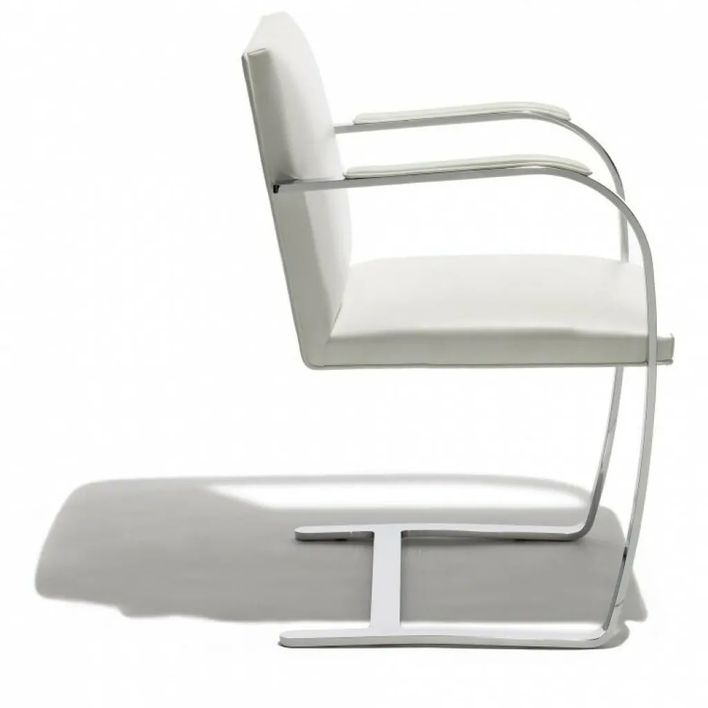 Der Brno Armlehnstuhl wurde von Ludwig Mies van der Rohe für die Marke Knoll International entworfen. 1930 für das Haus Tugendhat in Brünn kreiert, ist der Originalentwurf durch eine minimalistische Schlichtheit und Mies van der Rohes Liebe zum Detail gekennzeichnet. Auch heute noch wird der Freischwingerstuhl nach den anspruchsvollen Standards des Designers produziert. Er zählt der zu den klassischen Stilikonen der Bauhaus-Ära.
