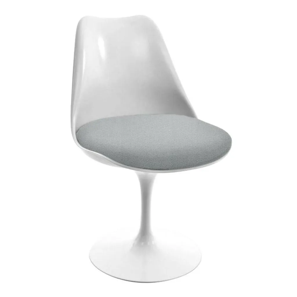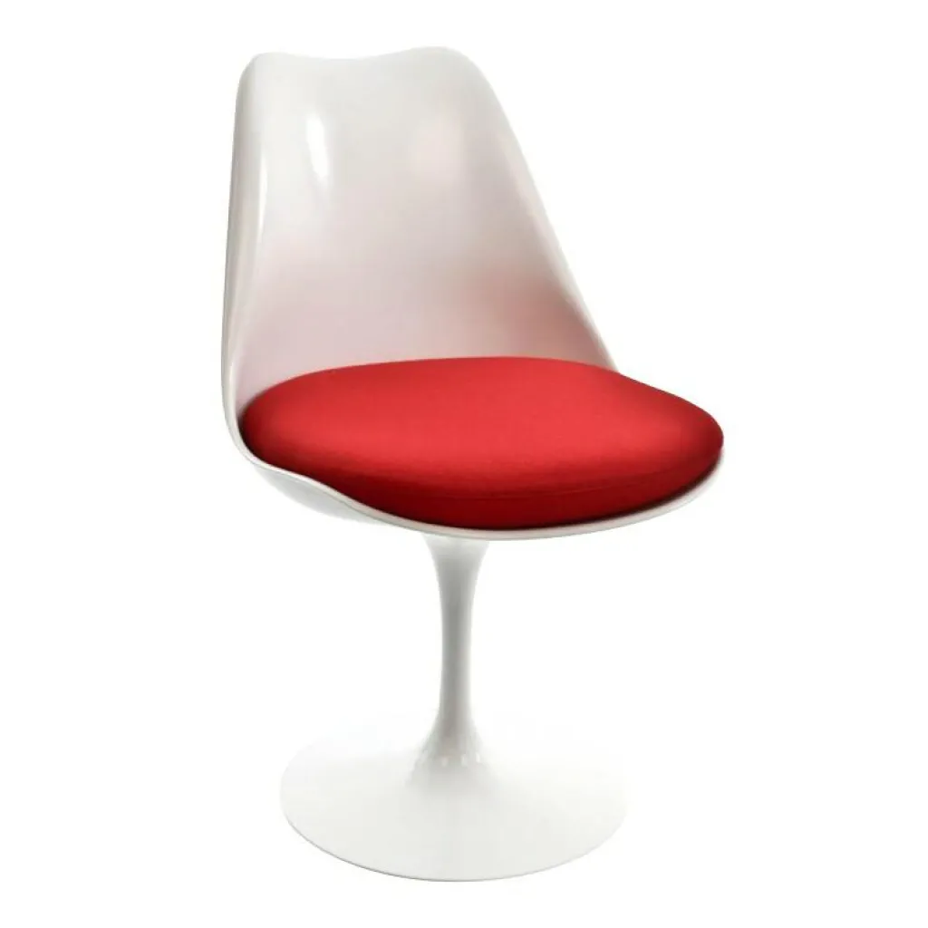 Die Sitzschale des Tulip Stuhl ist aus Kunststoff gefertigt und mit Fiberglas verstärkt. Der Fuß mit seiner charakteristischen Trompetenform besteht aus Leichtmetall mit einer Rilsan-Oberflächenbeschichtung. So ergibt sich die Tulpenform, die dem Tulip Stuhl auch ihren Namen gab. Ein abnehmbares Kissen sorgt für das Extramaß an Sitzkomfort.