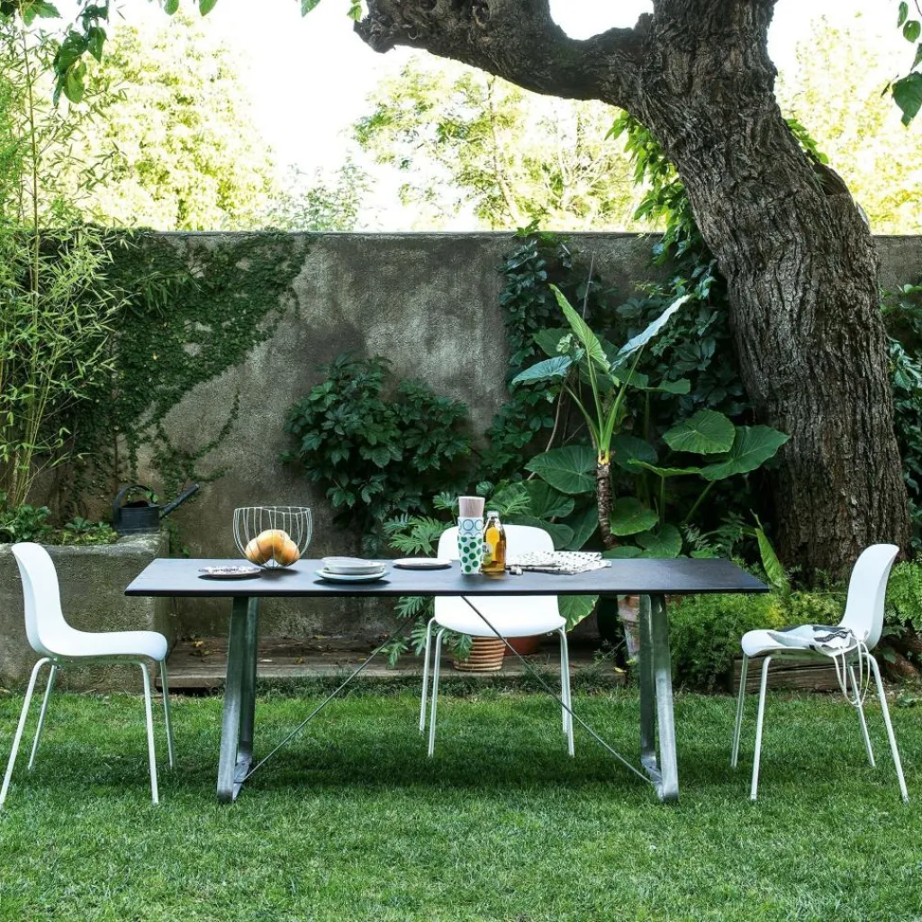 Mit seiner ergonomisch geformten Sitzschale und den geraden Beinen ist der Troy Gartenstuhl ein klassischer Stapelstuhl, der sich auch für längeres Sitzen eignet und darüber hinaus eine attraktive Optik zeigt. Der Sitz ist aus hochwertigem Polypropylen gefertigt und fällt mit seinem hauchdünnen Profil auf. So gibt er beim Platznehmen etwas nach und bietet gleichzeitig eine rückenschonende Stabilität. Sanfte Rundungen, eine leicht nach hinten geneigte Lehne und die großzügig gewölbte Stuhlkante versprechen zudem ein gemütliches Sitzgefühl. Der Unterbau besteht aus Stahlrohr, das raffiniert zu ausgestellten Beinen gebogen ist. Damit garantiert der bequeme Designstuhl einen stabilen Stand. Um einen Tisch gruppiert, passt der Magis Troy Gartenstuhl auf die Hotelterrasse, in ein Straßencafé oder in die Wiese. Einzeln findet er neben dem Pool oder auf dem Balkon Verwendung.