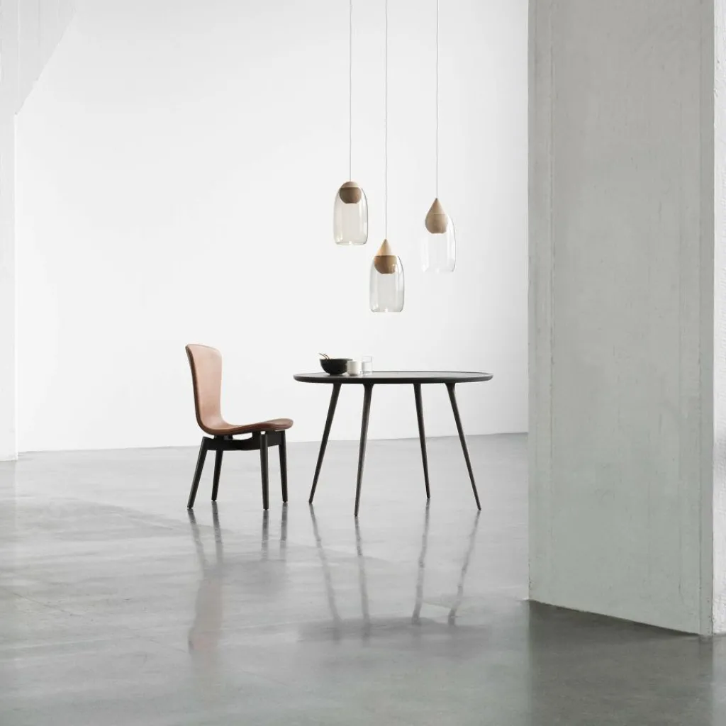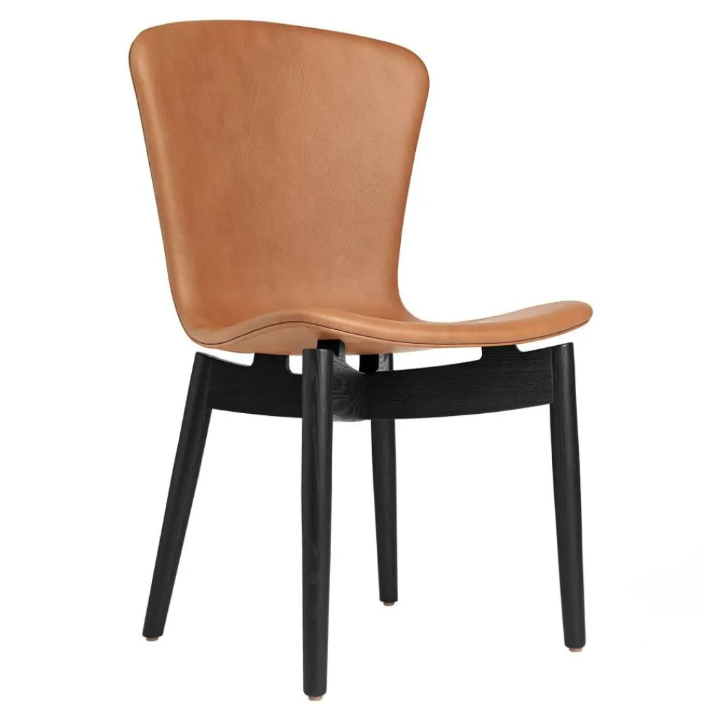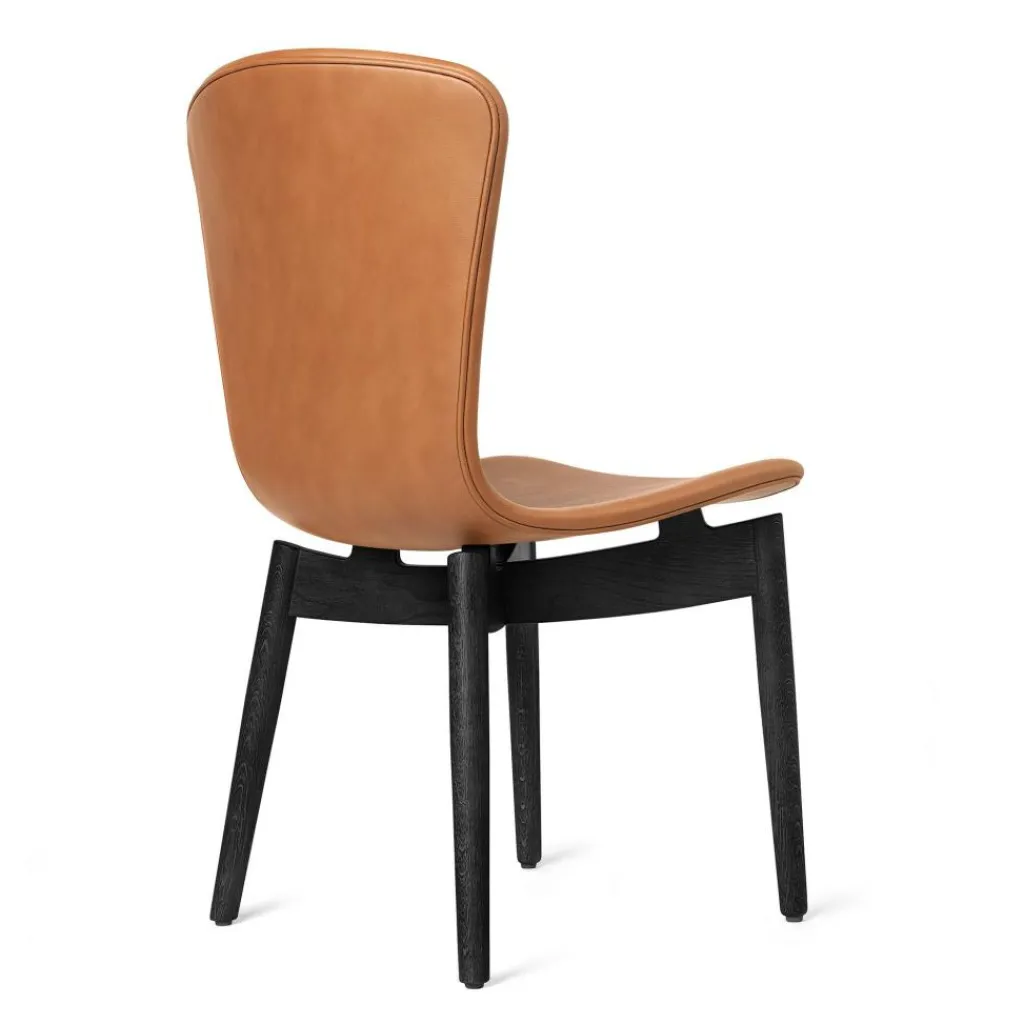 Bei der Fertigung des Shell Stuhl Eiche Schwarz zeigt sich der Designer umweltbewusst: Er verwendet edles Leder, das mit dem Label Nordic Swan prämiert ist. Somit stammt der Rohstoff aus nachhaltiger Fertigung. Die Sitzfläche, die direkt in eine ergonomisch geformte Rückenlehne übergeht, ist in Handarbeit genährt. Befestigt ist sie auf einem Gestell aus Eichenholz: Es trägt das FSC®-Label und stammt somit aus ökologischer Forstwirtschaft. Vier leicht ausgestellte Beine sorgen für sicheren Stand, wobei an der Unterseite Gleiter montiert sind. Die Beine führen sternförmig unter der Sitzfläche zusammen.