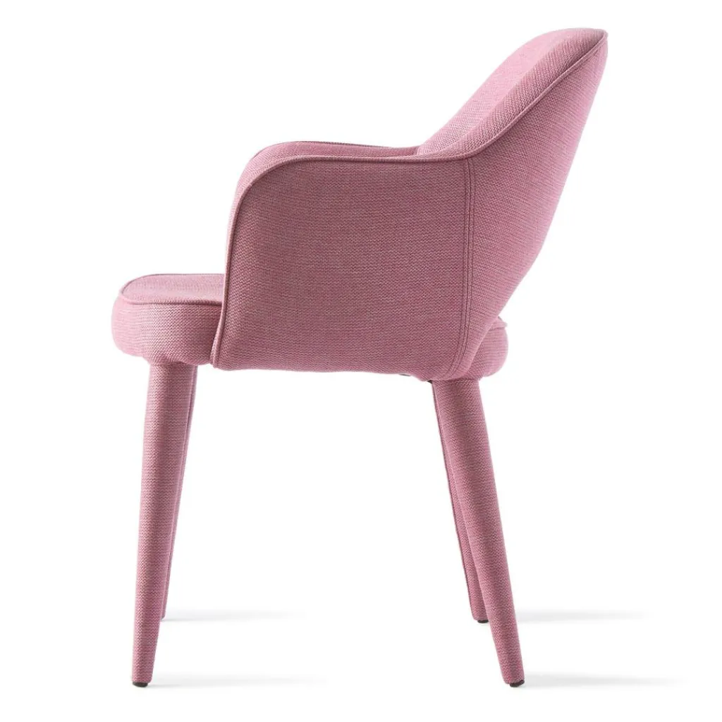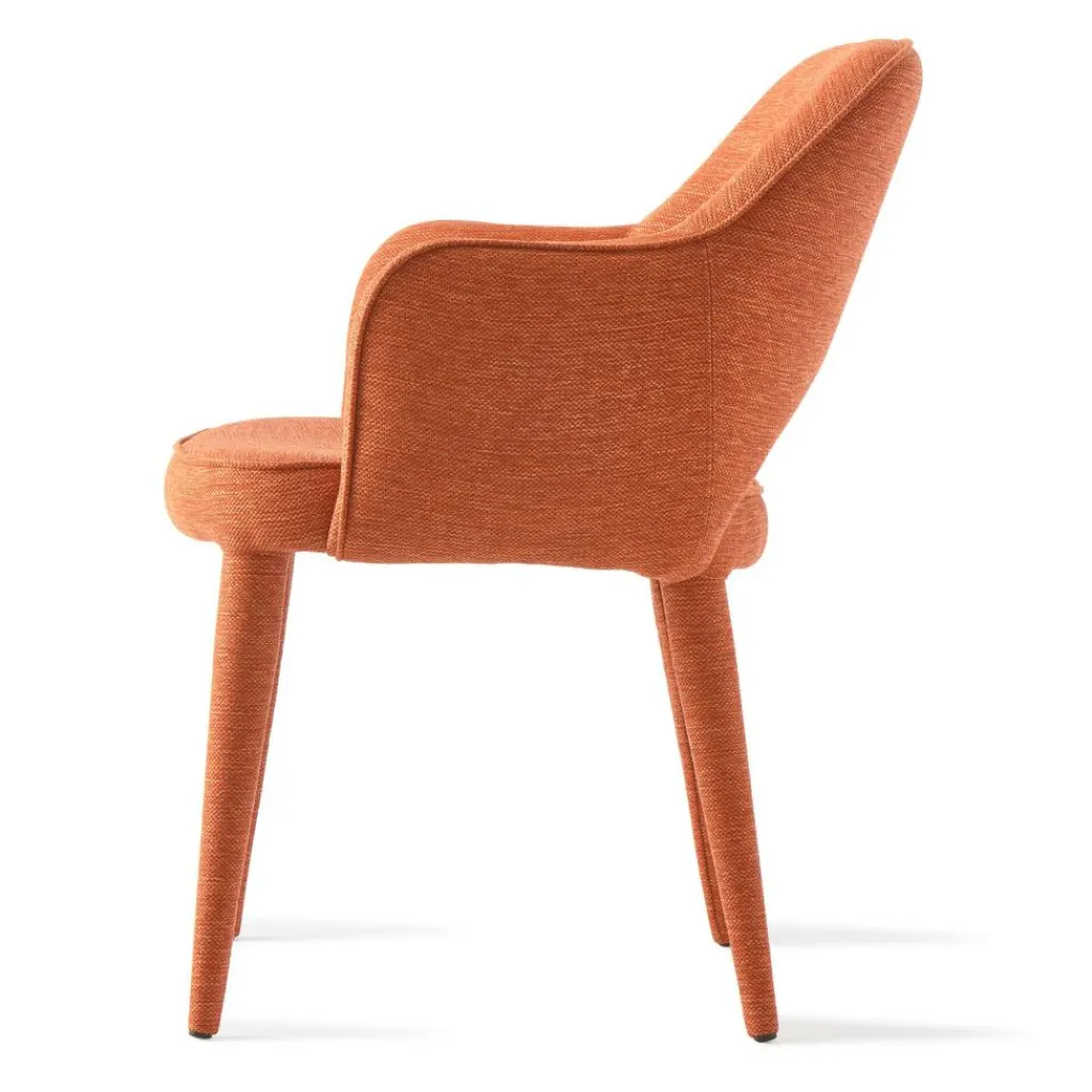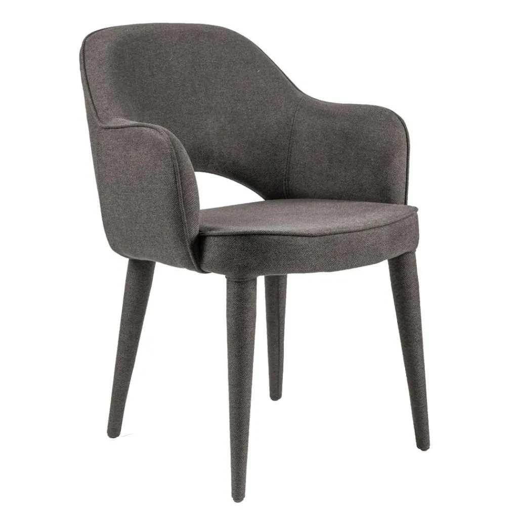 Sobald man auf dem Cosy Armlehnstuhl Platz nimmt, spürt man ein angenehmes Sitzgefühl. Die gepolsterte Sitzfläche und die ergonomisch geformte Rückenlehne bieten maximalen Komfort, ob am Esszimmertisch oder am Schreibtisch. Der Stuhl mit zwei Armlehnen ist aus hochwertigen, langlebigen Materialien gefertigt. Das Gestell besteht aus pulverbeschichtetem Metall, das sich unter einem dichten, hochelastischen CMHR-Schaumstoff verbirgt. Der Bezugsstoff aus 100% Polyester oder Olefin ist in verschiedenen Farben erhältlich, die elegant wirken. Besonders raffiniert: Auch die vier Stuhlbeine aus Metall sind mit dem passenden Stoff überzogen und bilden so mit dem Sitz eine kongeniale farbliche Einheit. An ihren Enden sind Plastikgleiter montiert. Ein halbrunder Ausschnitt an der Rückenlehne verleiht dem Modell zudem eine luftige Anmutung.