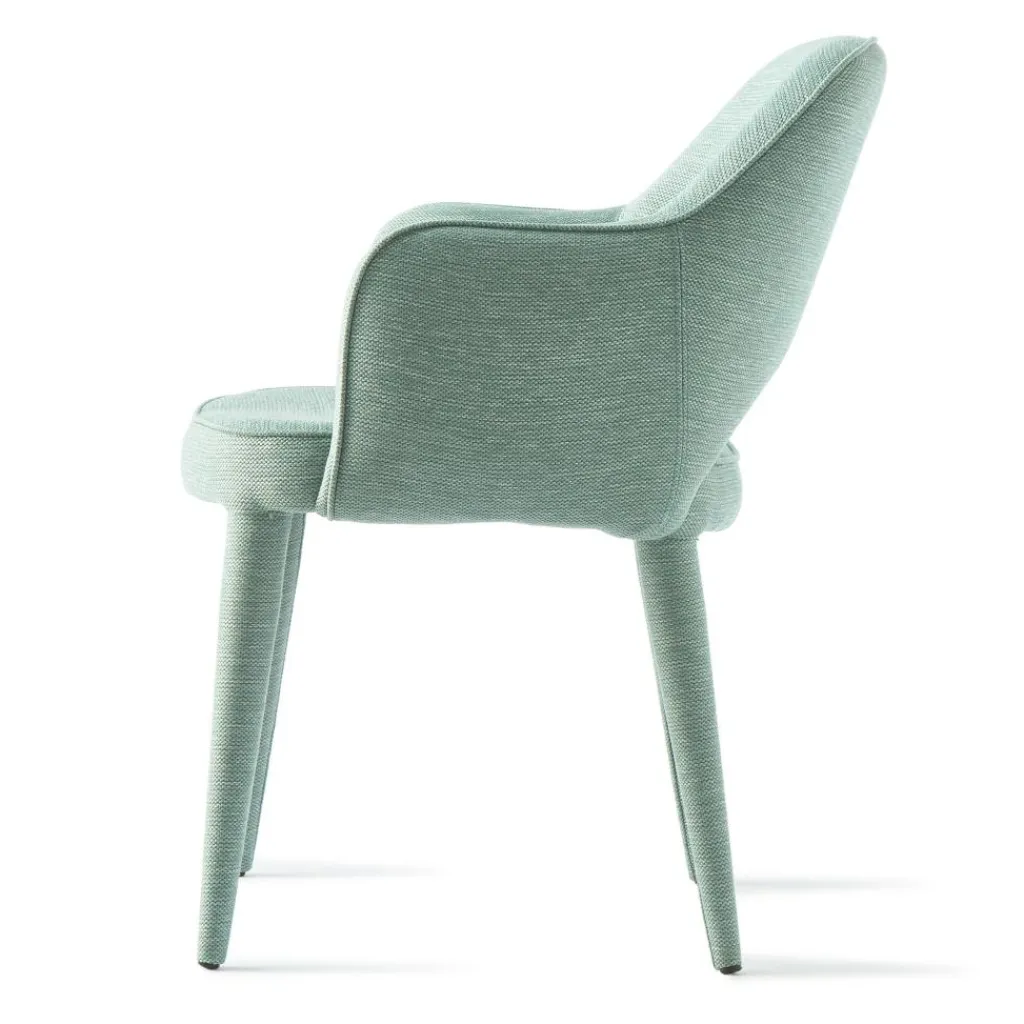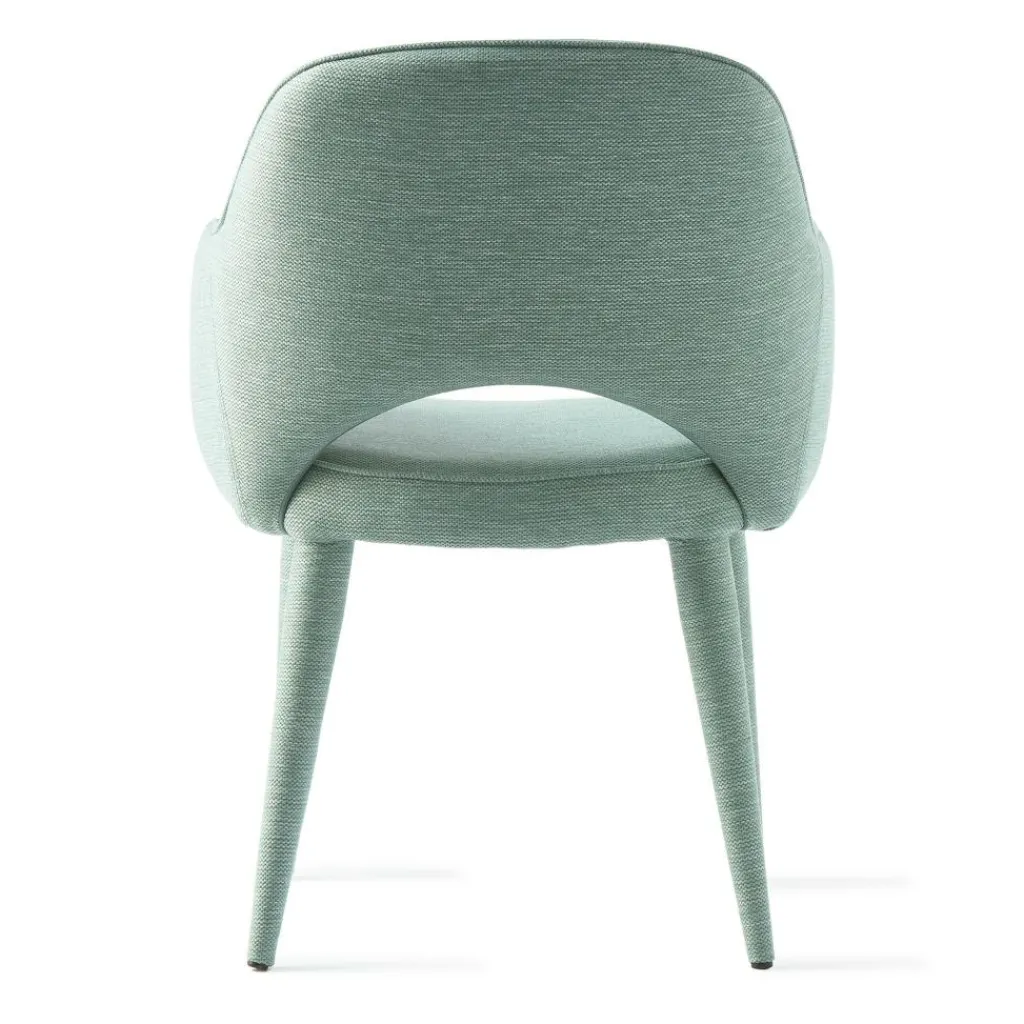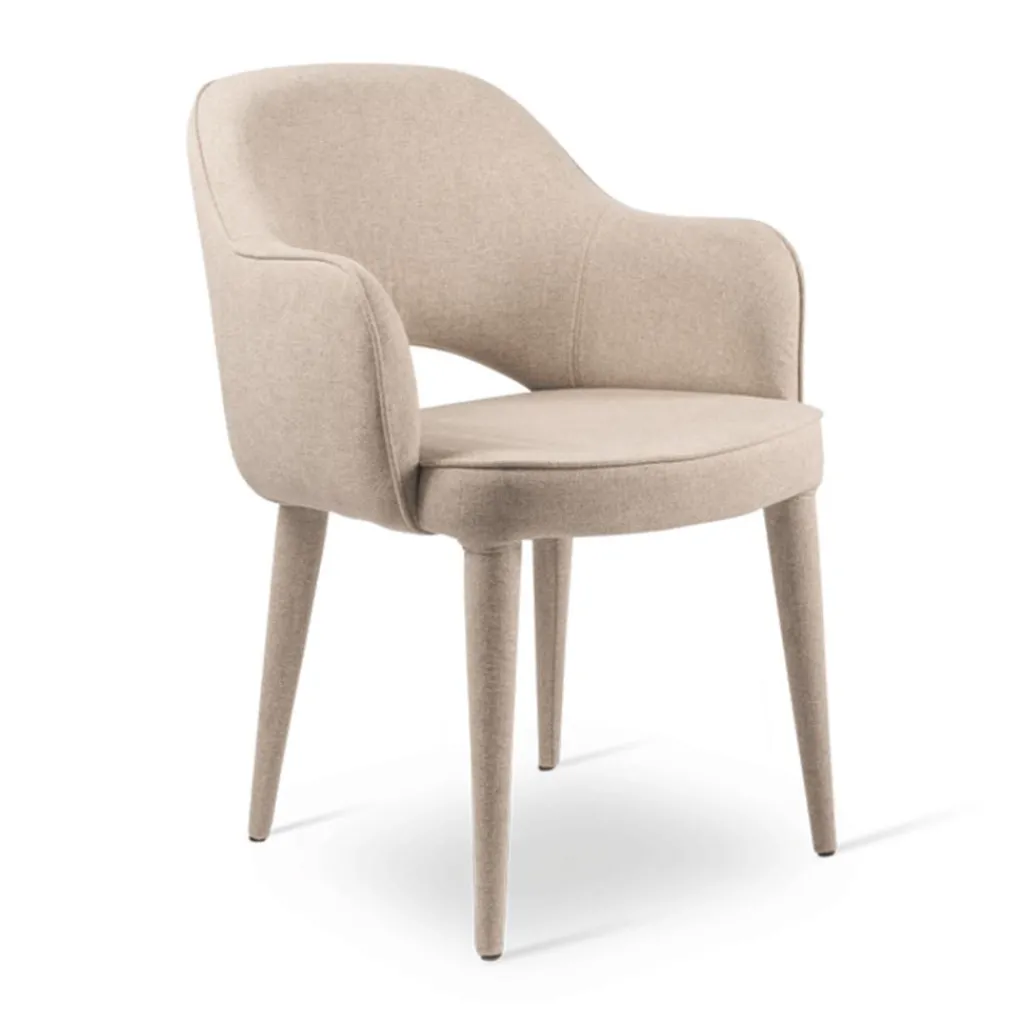 Sobald man auf dem Cosy Armlehnstuhl Platz nimmt, spürt man ein angenehmes Sitzgefühl. Die gepolsterte Sitzfläche und die ergonomisch geformte Rückenlehne bieten maximalen Komfort, ob am Esszimmertisch oder am Schreibtisch. Der Stuhl mit zwei Armlehnen ist aus hochwertigen, langlebigen Materialien gefertigt. Das Gestell besteht aus pulverbeschichtetem Metall, das sich unter einem dichten, hochelastischen CMHR-Schaumstoff verbirgt. Der Bezugsstoff aus 100% Polyester oder Olefin ist in verschiedenen Farben erhältlich, die elegant wirken. Besonders raffiniert: Auch die vier Stuhlbeine aus Metall sind mit dem passenden Stoff überzogen und bilden so mit dem Sitz eine kongeniale farbliche Einheit. An ihren Enden sind Plastikgleiter montiert. Ein halbrunder Ausschnitt an der Rückenlehne verleiht dem Modell zudem eine luftige Anmutung.