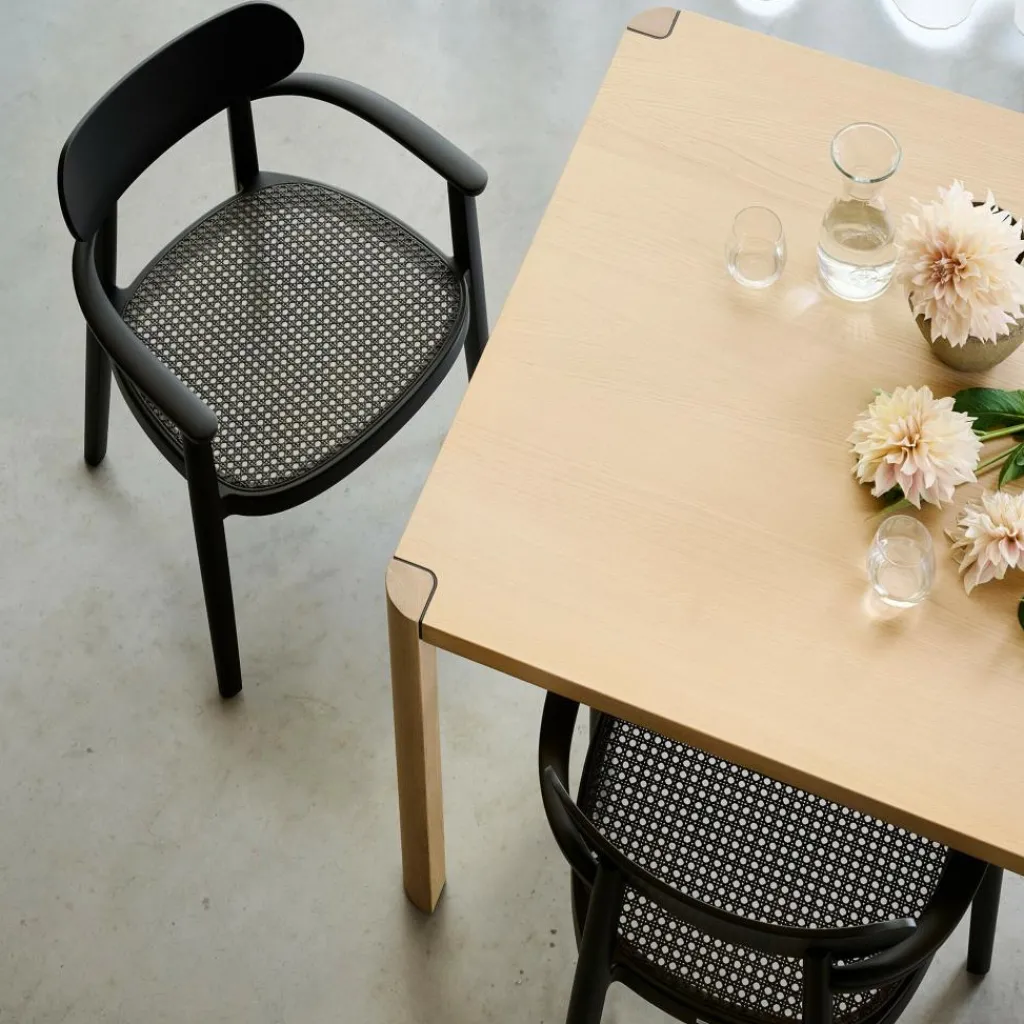 118 FV Armlehnstuhl mit Rohrgeflecht Dark Melange. Dieses Produkt ist von Sebastian Herkner für die Marke Thonet entworfen worden.