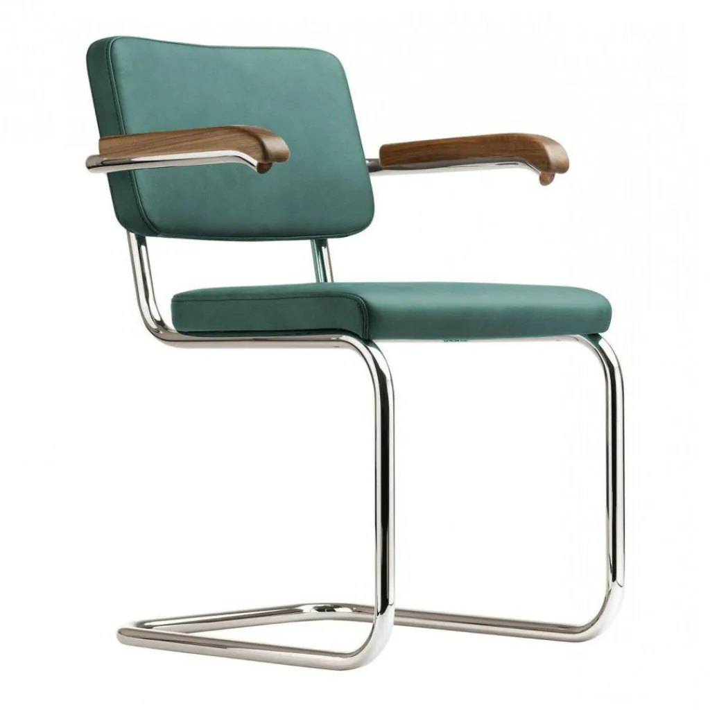 Der S 64 PV Pure Materials Freischwinger Armlehnstuhl Nussbaum wurde von Marcel Breuer für die Marke Thonet entworfen. Der deutsch-amerikanische Designer gilt als Erfinder der Stahlrohrmöbel, wobei der Freischwinger bereits im Jahr 1928 entstand.