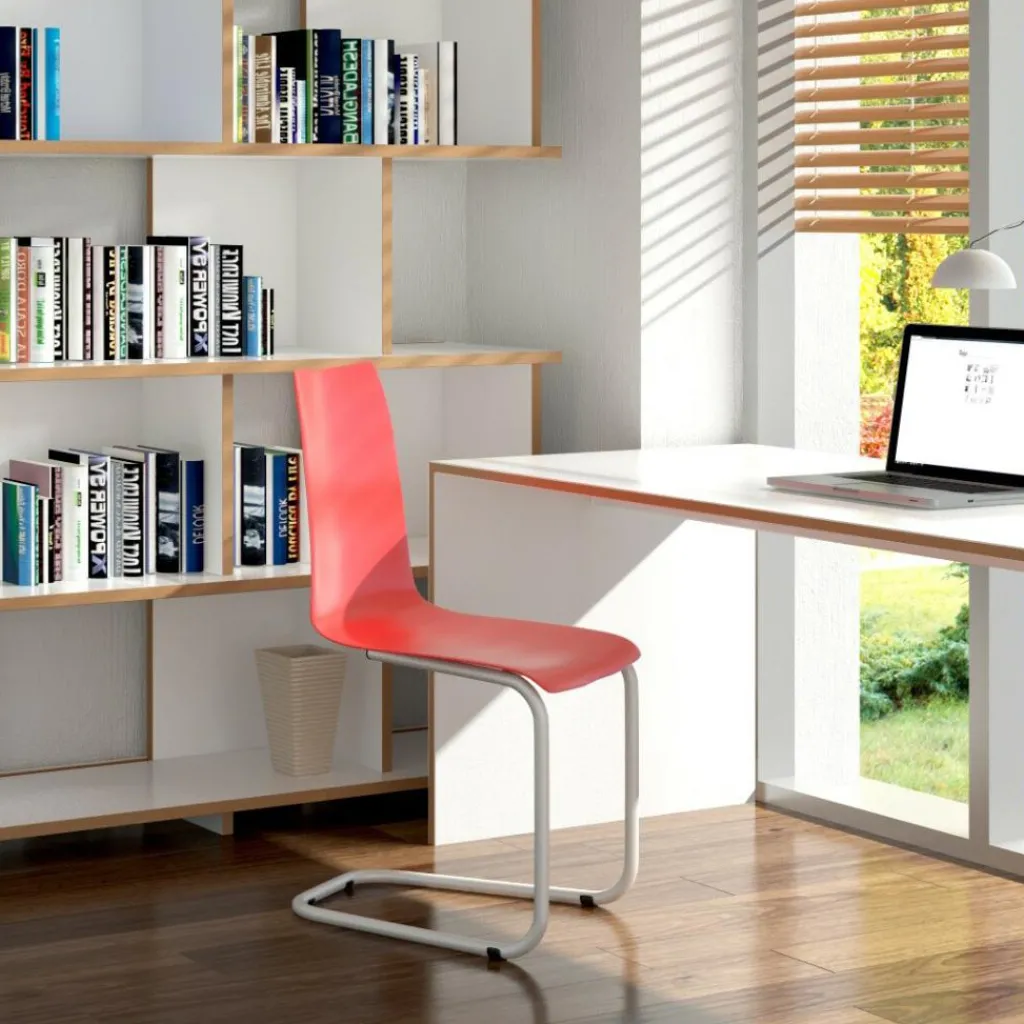 Mit Abmessungen von 45 x 50 cm und einer Höhe von 87 cm ist der Tojo Freischwinger Stuhl vielseitig einsetzbar. Im Privatbereich bildet er im Esszimmer ein ausdrucksstarkes Ensemble oder setzt als Einzelstück ein Design-Highlight in jedem Zimmer. Aber auch im gewerblichen Bereich ist der Freischwinger als Konferenz- oder Kantinenstuhl optimal nutzbar. Weil er leicht auseinandergebaut werden kann, ist ein platzsparender Transport des Stuhls möglich. Der Tojo Freischwinger Stuhl besitzt ein filigranes Gestell aus beschichtetem Stahlrohr und eine dünne Sitzschale aus Polypropylen, die dem Möbelstück eine elegante Anmutung verleiht und hervorragenden Sitzkomfort bietet.