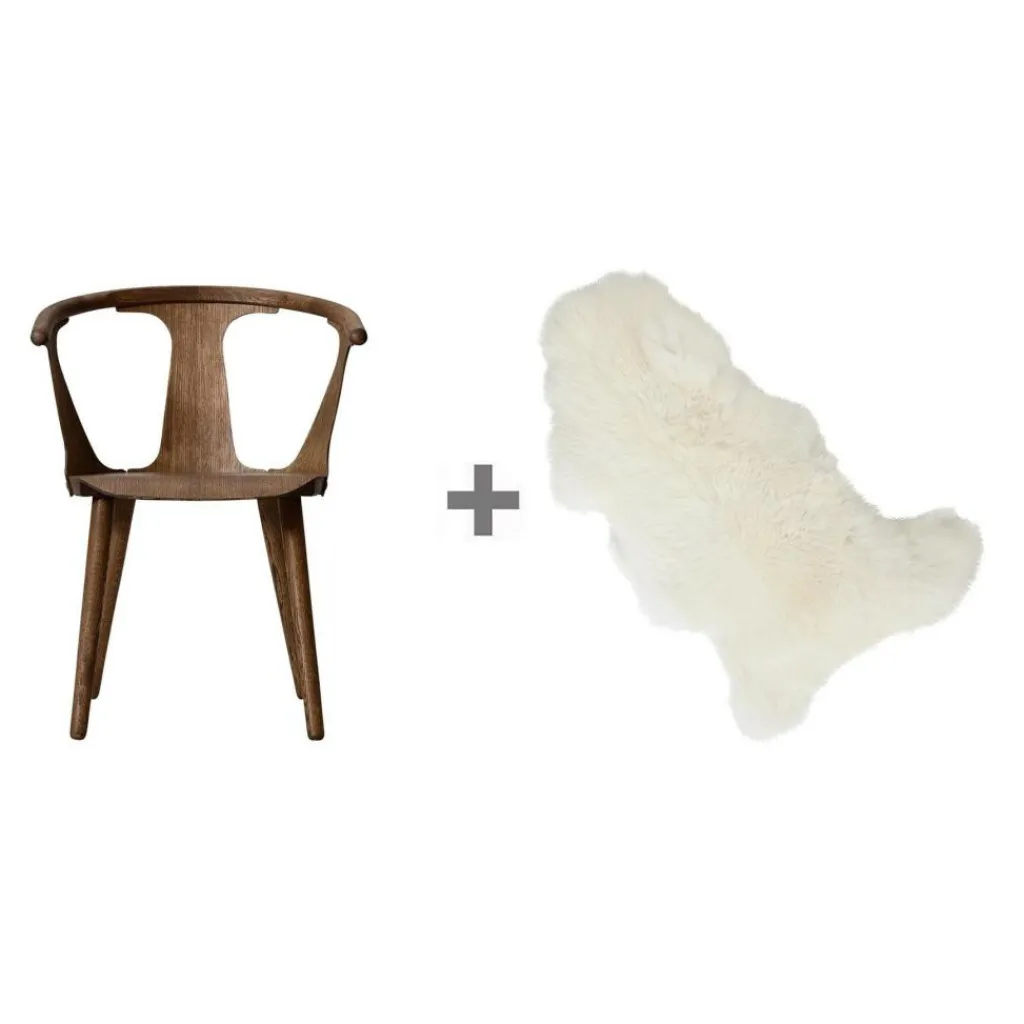 Das Aktionsset In Between Chair SK1 Stuhl + Fell wird mit einem weichen Lammfell geliefert. Es ist an den Stuhl perfekt angepasst und wärmt an kühlen Tagen. Der Stuhl ist 70 cm hoch, die Sitzhöhe beträgt 45 cm. Das Modell ist 58 cm breit und 54 cm tief. Die Höhe der Armlehnen beträgt 70 cm. 10 kg ist der formschöne Holzstuhl schwer.