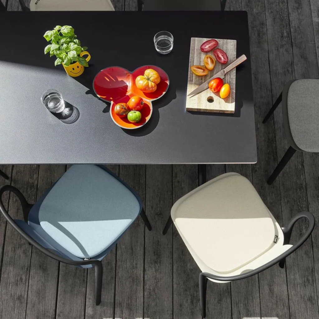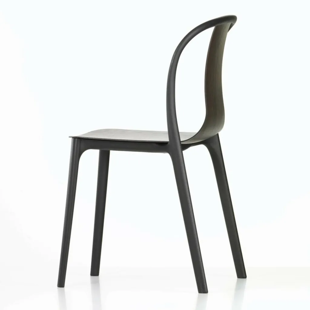 Der Belleville Gartenstuhl Kunststoff wurde von den Designern Ronan & Erwan Bouroullec für den Hersteller Vitra entworfen. Ziel war ein witterungsbeständiger, moderner und zeitloser Bistrostuhl, der sich ebenfalls für private Zwecke eignet. All dies konnte beim Belleville Gartenstuhl Kunststoff in die Tat umgesetzt werden. Die Verwendung von Kunststoff führt dazu, dass dieser Stuhl sehr leicht und somit problemlos zu versetzen und zu stapeln ist. Das Grundgestell wird immer in Schwarz aus einem stabilen Rahmen produziert, während Sie bei der Sitzfläche und Rückenlehne aus einer umfangreichen Farbpalette wählen können. Die geschwungene Rückenlehne, die nur in der Mitte einen schmalen, ergonomisch geformten Streifen zum Anlehnen erhielt, fungiert als Blickfang. Vier Füße verlaufen leicht abgeschrägt nach unten und garantieren auf diese Weise den stabilen Stand des Stuhles. Er hat die Maße 55 cm Breite x 83 cm Höhe x 50 cm Tiefe . Alternativ bietet Ihnen Vitra den Belleville Gartenstuhl Kunststoff auch mit einem Holzfurnier als Sitzfläche an. Eine weitere Kollektion besteht aus gepolsterten Sitzflächen aus Leder oder Stoff. Eine Serie mit Armlehnen rundet das Sortiment ab. Sie können den Bistrostuhl perfekt mit Tischen aus der Belleville-Serie kombinieren und so eine einheitliche Sitzgruppe bilden.