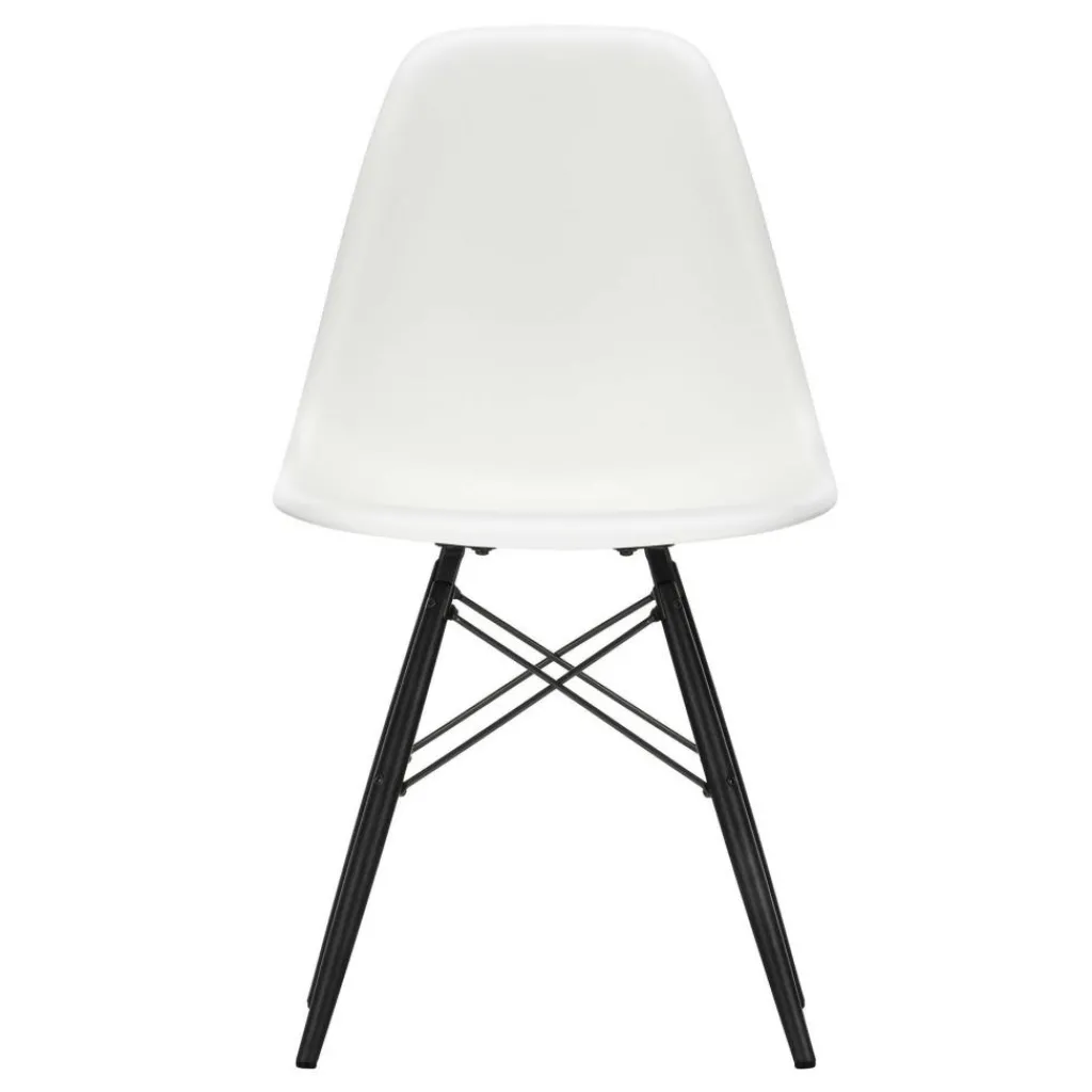 Als Re-Edition wurde der Eames Plastic Side Chair DSW Ahorn schwarz zum ersten Mal im Rahmen des „Low Cost Furniture Design“ Wettbewerbs in New York präsentiert. Damals nannte er sich noch „Fiberglass Chair“. Heute produziert das Label Vitra den Eames Plastic Side Chair DSW Ahorn schwarz aus dem umweltfreundlicheren Werkstoff Polyproplen. Das Gestell wird weiterhin aus Ahornholz gefertigt. Der hier gezeigte Eames Plastic Side Chair DSW Stuhl präsentiert sich mit einem schwarzem Ahorn-Untergestell. Erleben Sie noch mehr Sitzkomfort! Ab Juni 2015 erhalten Sie den Eames Plastic Side Chair DSW Ahorn schwarz Stuhl mit einer neuen Sitzhöhe von 43cm. Alle weiteren Eames Plastic Chairs werden ebenfalls nur noch mit der neuen Sitzhöhe ausgeliefert.