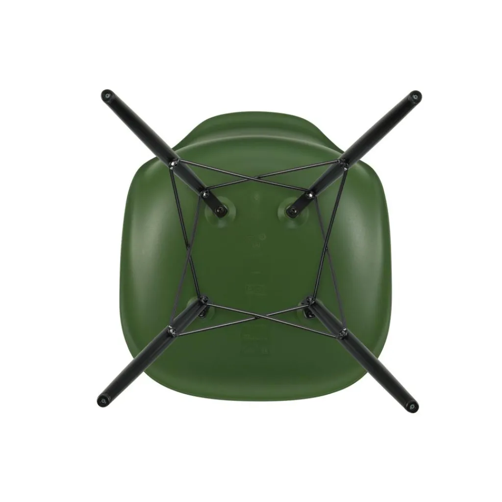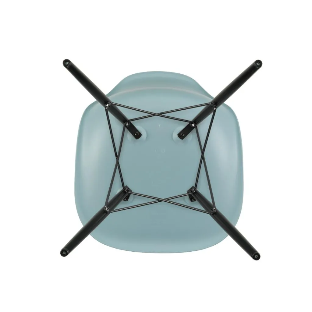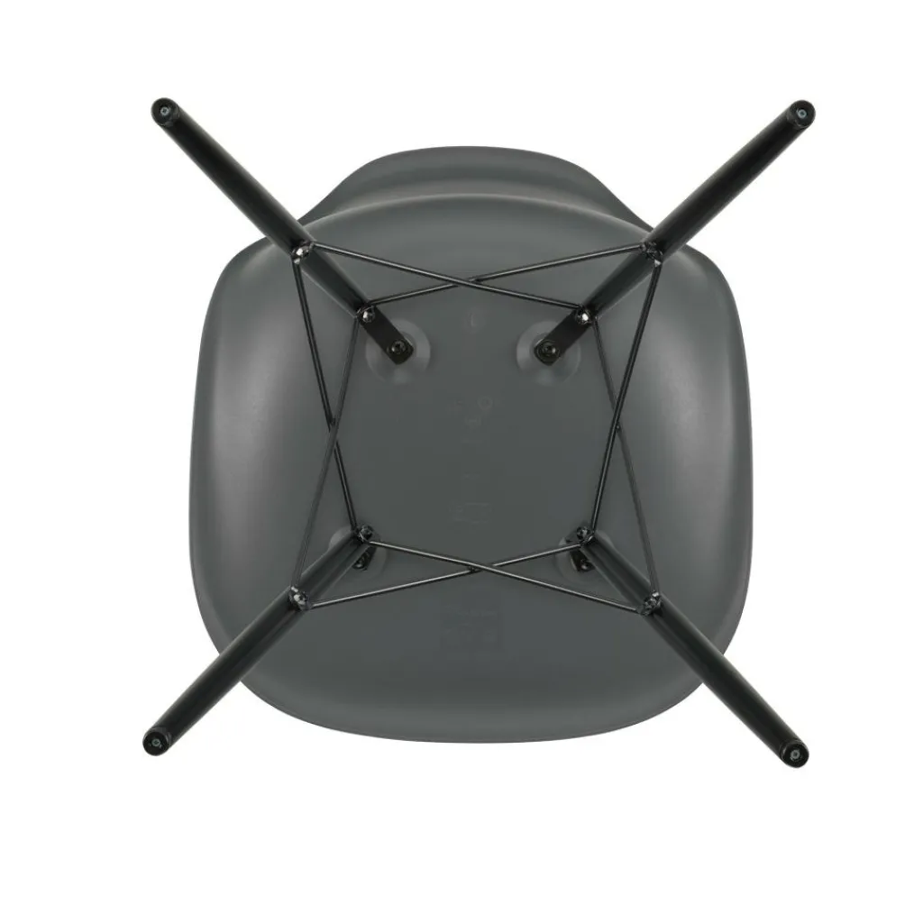 Ein attraktiver Materialmix aus Kunststoff, Stahl und Holz bildet dieses Stuhldesign, das bequemen Sitzkomfort mit stylisher Optik verbindet. Die vierbeinige Konstruktion besteht aus formschönen Rundstäben, die aus Ahornholz gefertigt und dunkel gebeizt sind. Verkreuzte Stahlstreben schenken dem Gestell eine hohe Stabilität. Die ergonomisch geschwungene Kunststoffschale verspricht ein angenehmes Sitzgefühl. Mit hochwertigen Filzgleitern ausgestattet, garantiert der Eames Plastic Side Chair DSW RE Ahorn schwarz einen bodenschonenden Stand auf harten Bodenbelägen. Er passt ins Wohnzimmer, an den Küchentisch und eignet sich als Ausstattung für den Warteraum einer Praxis, die Kantine im Büro, ein modernes Café oder ein Hotel.