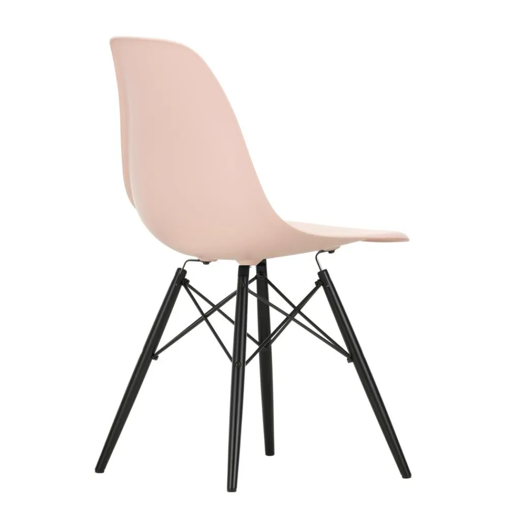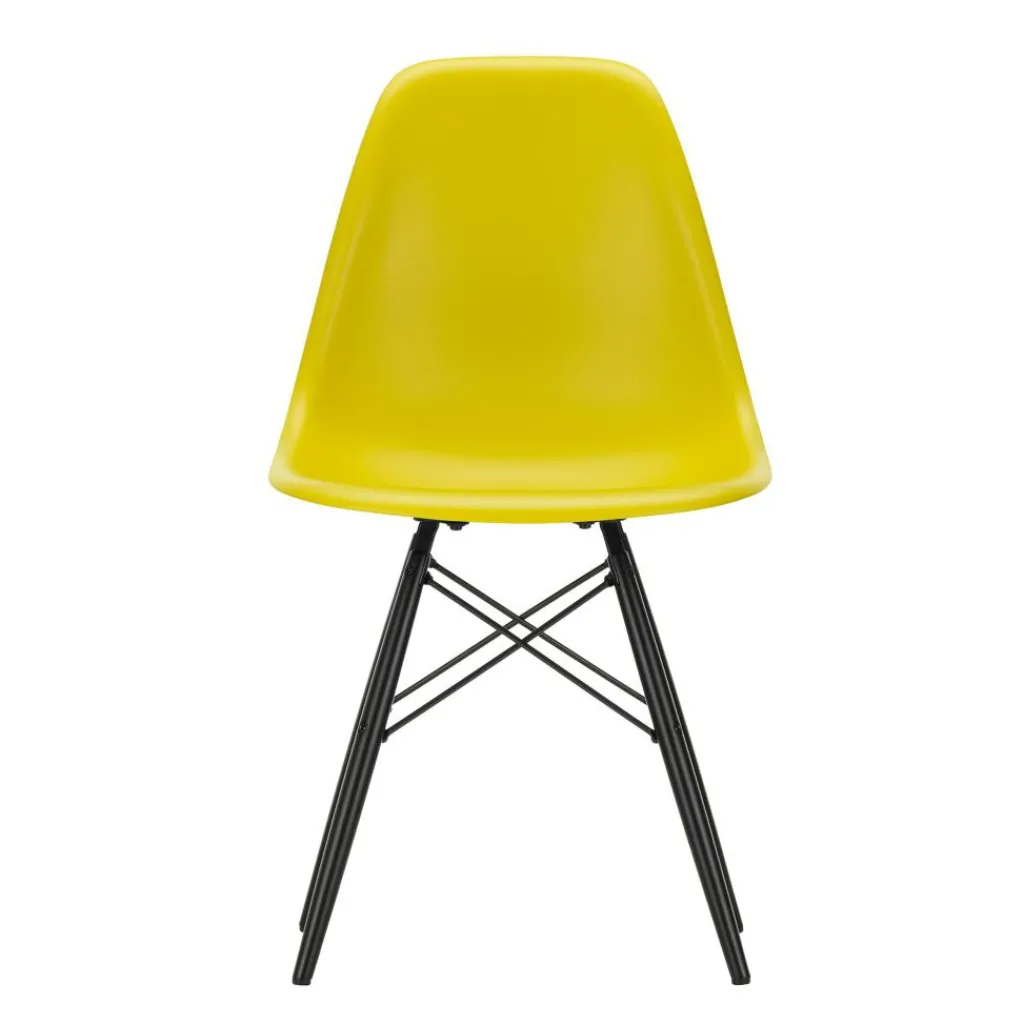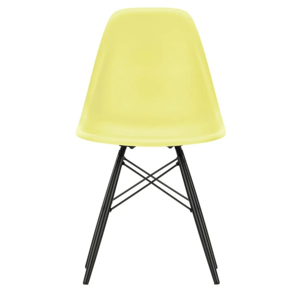 Der Eames Plastic Side Chair DSW RE Ahorn schwarz wurde von Ray und Charles Eames für die Marke Vitra entworfen. Er gehört zu einer Stuhlserie, die ein ikonisches Design aus 1950 mit nachhaltigen, aus recyceltem Kunststoff gefertigten Sitzschalen kombiniert. Seinem formschönen Holzgestell verdankt der schicke Designstuhl die Bezeichnung DSW für Dining Height Chair Wood Base.
