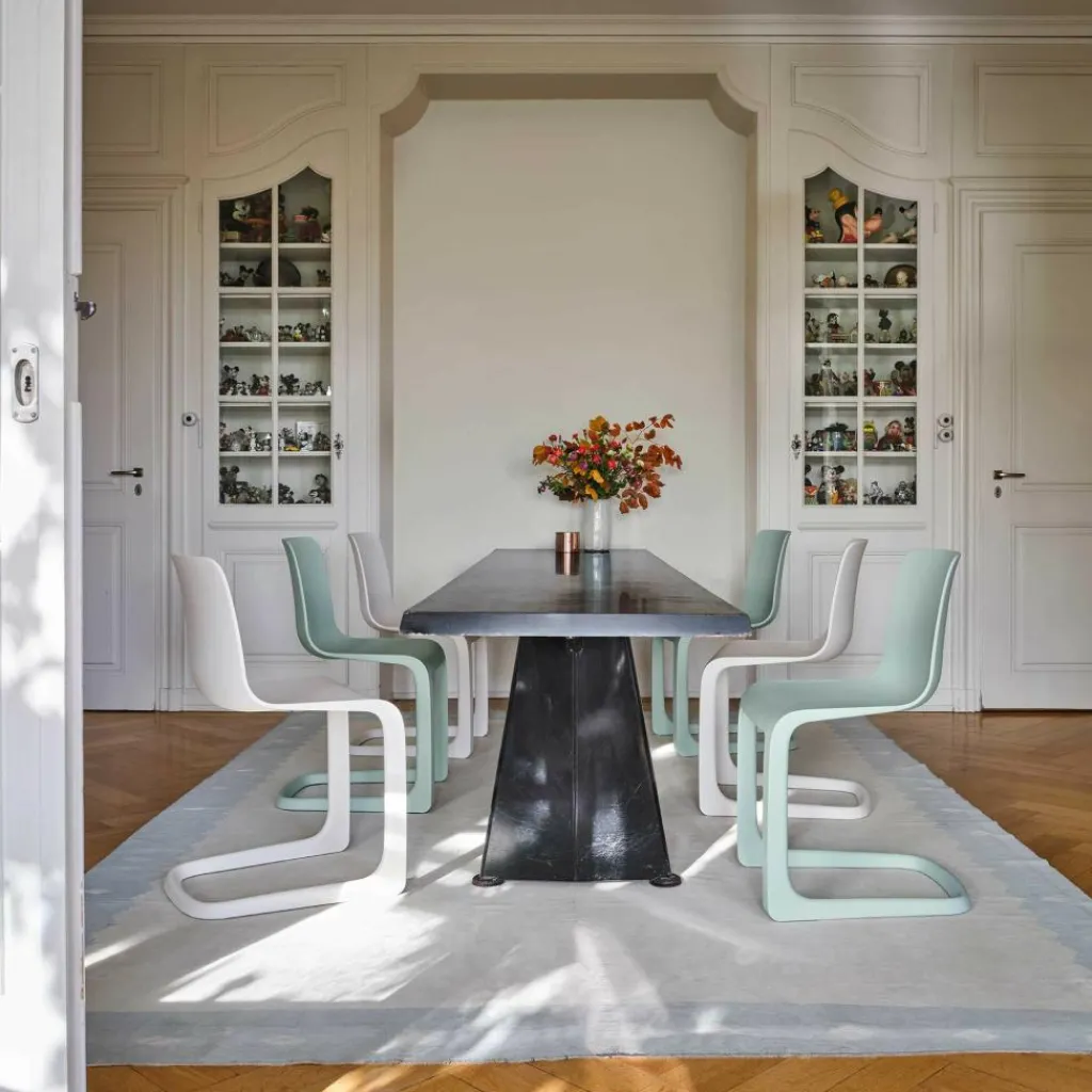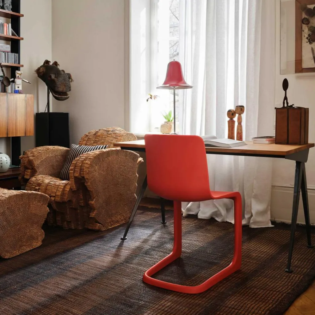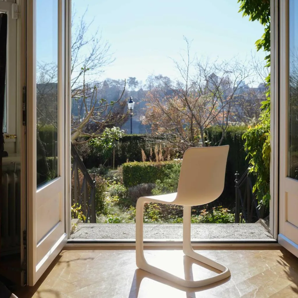 Der EVO-C Stuhl wurde von Jasper Morrison für die Marke Vitra entworfen. Der Aufbau ist deckungsgleich mit den legendären Freischwingern, die ab den 1920er Jahren für Furore sorgten. Der britische Designer verwendet jedoch nicht das traditionelle Material Stahlrohr, sondern Kunststoff.