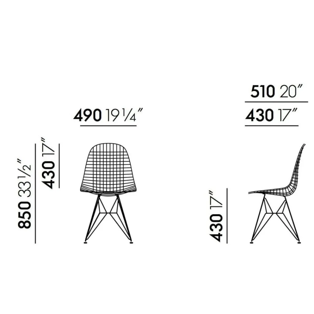 Hochwertiger verchromter und verschweißter Stahldraht verspricht Stabilität beim Sitzen und lässt auf die hohe Qualität des Wire Chair DKR Stuhl schließen. Das herausragende Designer-Stück mit den Maßen 49 x 85 x 51 cm ist dank des flexiblen Materials in Innen- und auch Außenbereichen wie Balkon oder Terrasse einsetzbar. Die Sitzhöhe von 43 cm verleiht dem Wire Chair des Designer-Duos Eames einen Teil seines Produktnamens.