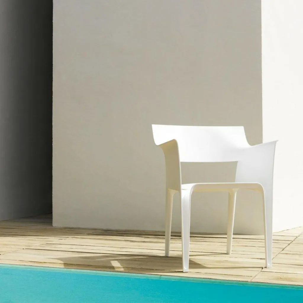Der Pedrera Armlehnstuhl ist eine futuristisch-abstrakte Sitzgelegenheit des immer wieder experimentierfreudigen Einrichtungskünstlers Eugenii Quitllet, die die Kollektionen der Design-Schmiede Vondom mit einem neuen Lebensgefühl versieht.