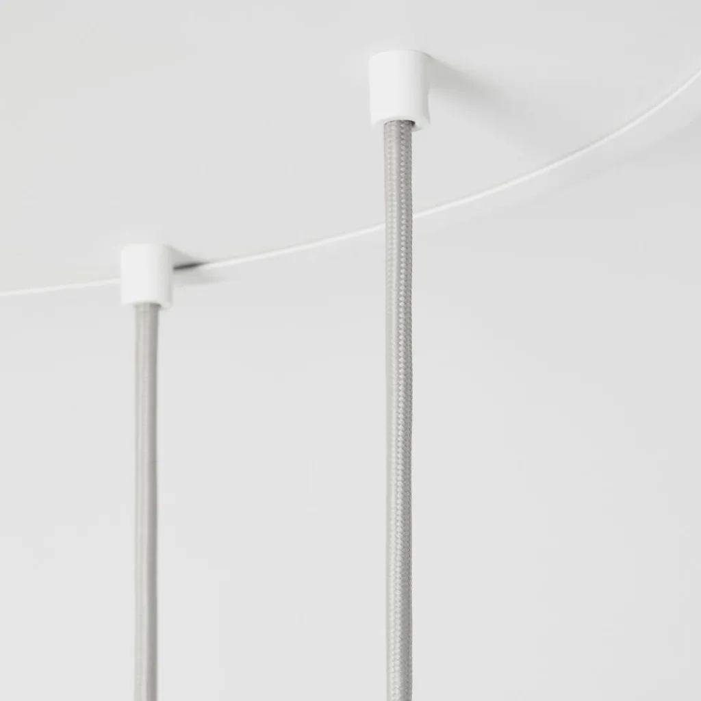 Als Basis dient der Alumina Nine Pendant with Sphere V Pendelleuchte eine Deckenrosette. Sie hat einen Durchmesser von 50,8 cm und ist 5 cm hoch. Gefertigt ist die Rosette aus pulverbeschichtetem Aluminium. Daraus entspringen 9 Textilkabel, an deren Ende jeweils E27-Fassungen aus pulverbeschichtetem Aluminium die Leuchtmittel tragen. Die Alumina Nine Pendant with Sphere V Pendelleuchte wird mit 9 Sphere-V-Leuchtmitteln geliefert. Sie tragen zum Stromsparen bei, da sie 90 Prozent weniger Energie benötigen als traditionelle Leuchtmittel. Gefertigt sind die Leuchtmittel aus opalem Borosilikatglas. Außerdem trägt die Alumina Nine Pendant with Sphere V Pendelleuchte zur nachhaltigen Forstwirtschaft bei: Je 200 verkaufter Produkte werden von der britischen Marke 10 Bäume gepflanzt.