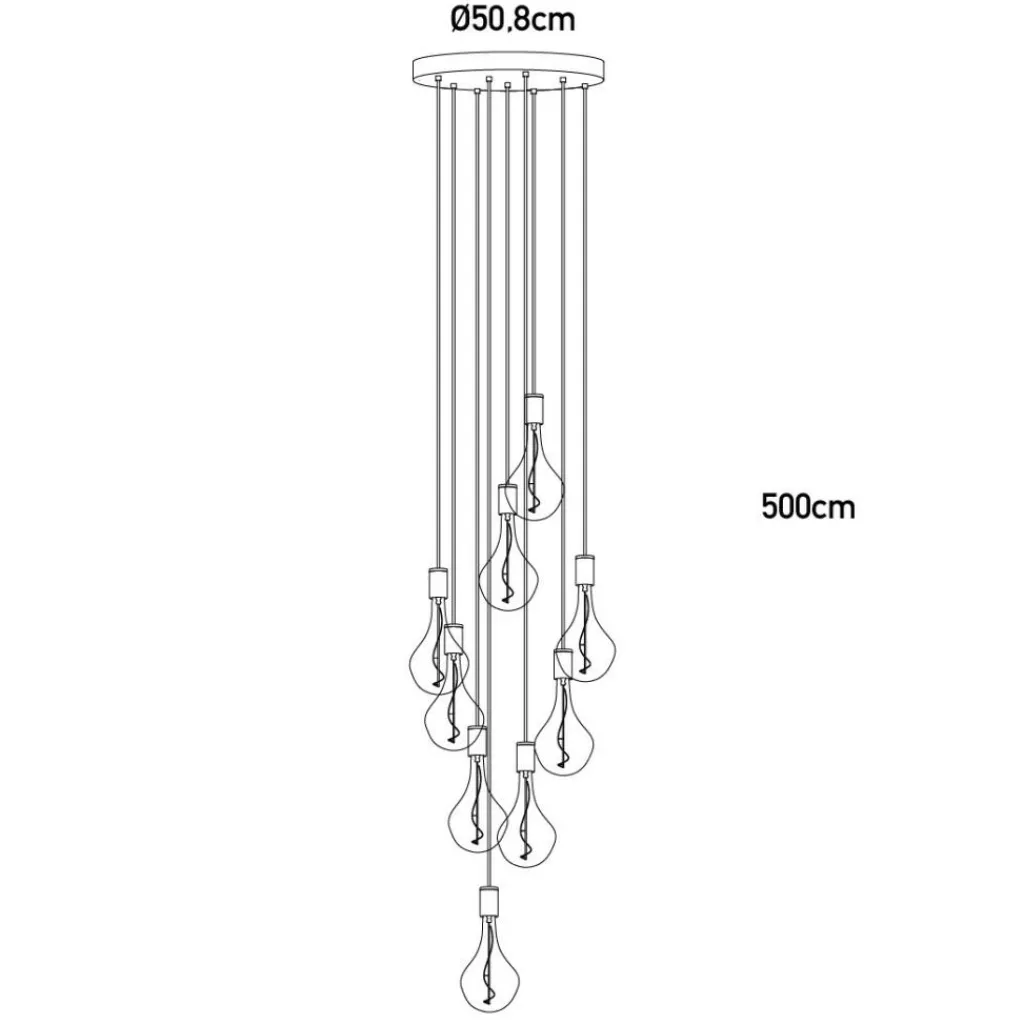 Besonders stimmungsvoll sieht es aus, wenn die im Lieferumfang enthaltenen Leuchtmittel mit E27-Fassungen in unterschiedlichen Höhen aufgehängt werden. Dazu dienen 500 cm lange Kabel. Der Baldachin weist einen Durchmesser von 50,8 cm auf. Die filigranen Halterungen für die Leuchtmittel messen 5 cm im Durchmesser.