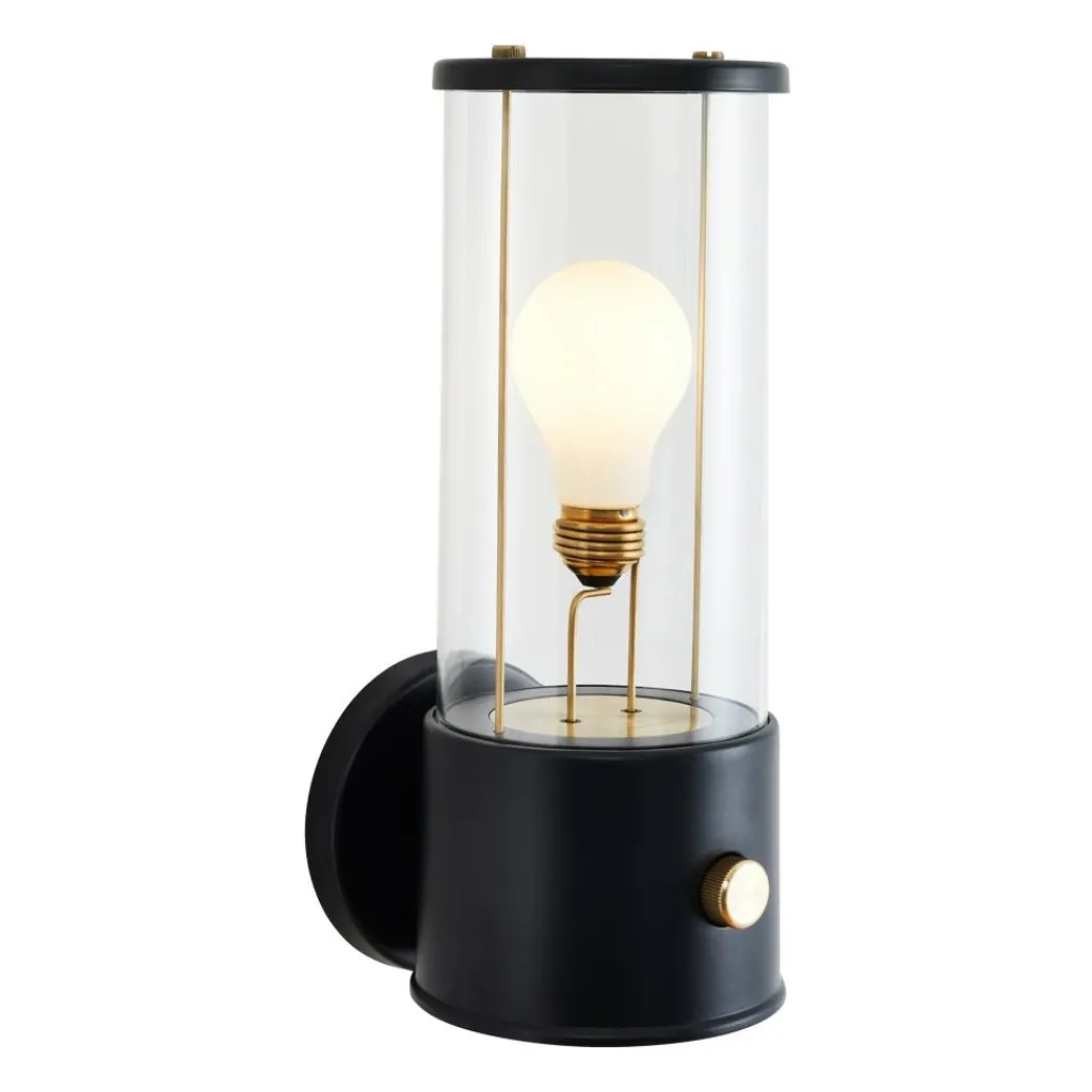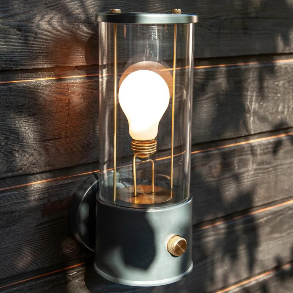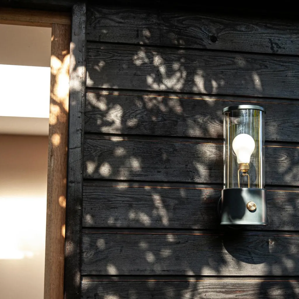 Mit ihrem von außen sichtbaren Leuchtmittel erinnert The Muse Wandleuchte an alte Laternen. Ihr glattes, schnörkelloses Design macht sie zu einem modernen Leuchtkörper. Ihr Leuchtmittel sitzt in einer zylindrischen Röhre, die durch ihr klares Borosilikatglas den Blick auf die Messingkonstruktion und die Anschlüsse freigibt. Ein Zylinder aus Aluminiumguss bildet die Basis, eine kreisrunde Aluminiumplatte die obere Abdeckung der Leuchtröhre. Mit Dim-to-warm-Technologie ausgestattet, kann die Designleuchte sowohl über den integrierten Drehdimmer als auch per Wandschalter gesteuert werden. Die The Muse Wandleuchte passt perfekt in ein Gartenhäuschen, auf die Terrasse, Veranda oder neben den Eingang.