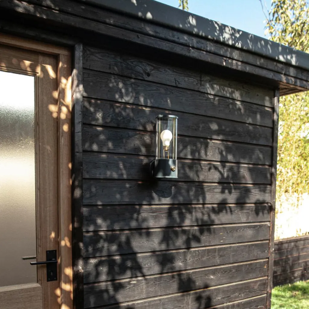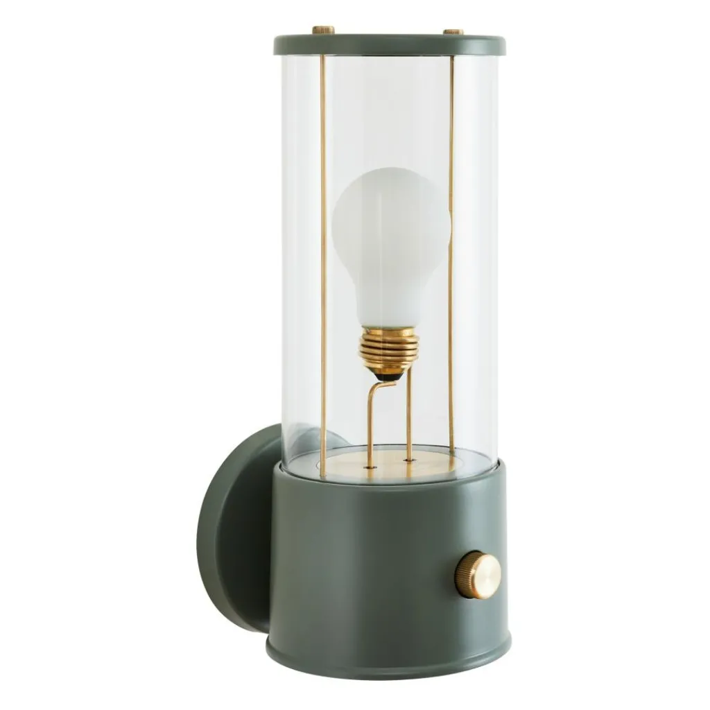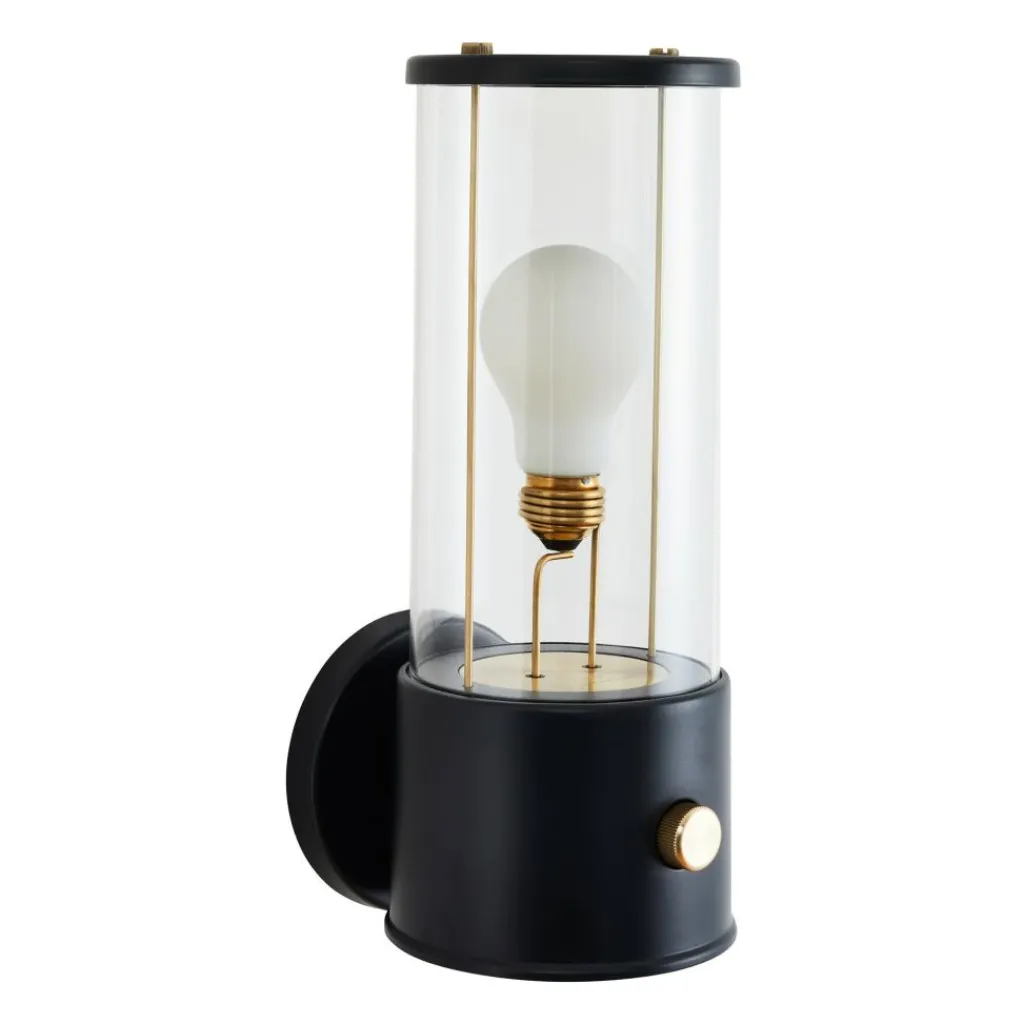 Mit ihrem von außen sichtbaren Leuchtmittel erinnert The Muse Wandleuchte an alte Laternen. Ihr glattes, schnörkelloses Design macht sie zu einem modernen Leuchtkörper. Ihr Leuchtmittel sitzt in einer zylindrischen Röhre, die durch ihr klares Borosilikatglas den Blick auf die Messingkonstruktion und die Anschlüsse freigibt. Ein Zylinder aus Aluminiumguss bildet die Basis, eine kreisrunde Aluminiumplatte die obere Abdeckung der Leuchtröhre. Mit Dim-to-warm-Technologie ausgestattet, kann die Designleuchte sowohl über den integrierten Drehdimmer als auch per Wandschalter gesteuert werden. Die The Muse Wandleuchte passt perfekt in ein Gartenhäuschen, auf die Terrasse, Veranda oder neben den Eingang.