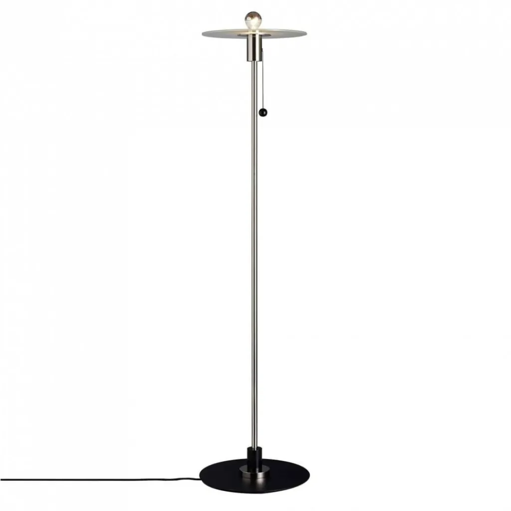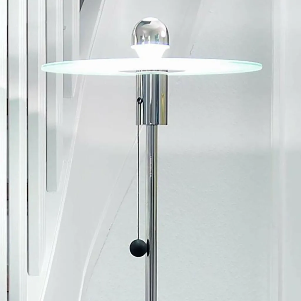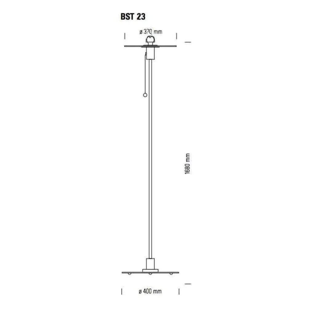 Zum Einschalten dient ein kleines Seil, das aus der zylinderförmigen Halterung unter der Glasscheibe entspringt. Mit einem 2,5 m langen Kabel wird die Leuchte mit dem Stromkreis verbunden. Der Fuß hat einen Durchmesser von 40 cm, die Glasplatte misst im Durchmesser 37 cm. Die Höhe der Leuchte beträgt 168 cm. Sie wiegt 12,5 kg und benötigt ein Leuchtmittel mit einer E27-Fassung, das unter Zubehör mitbestellt werden kann.