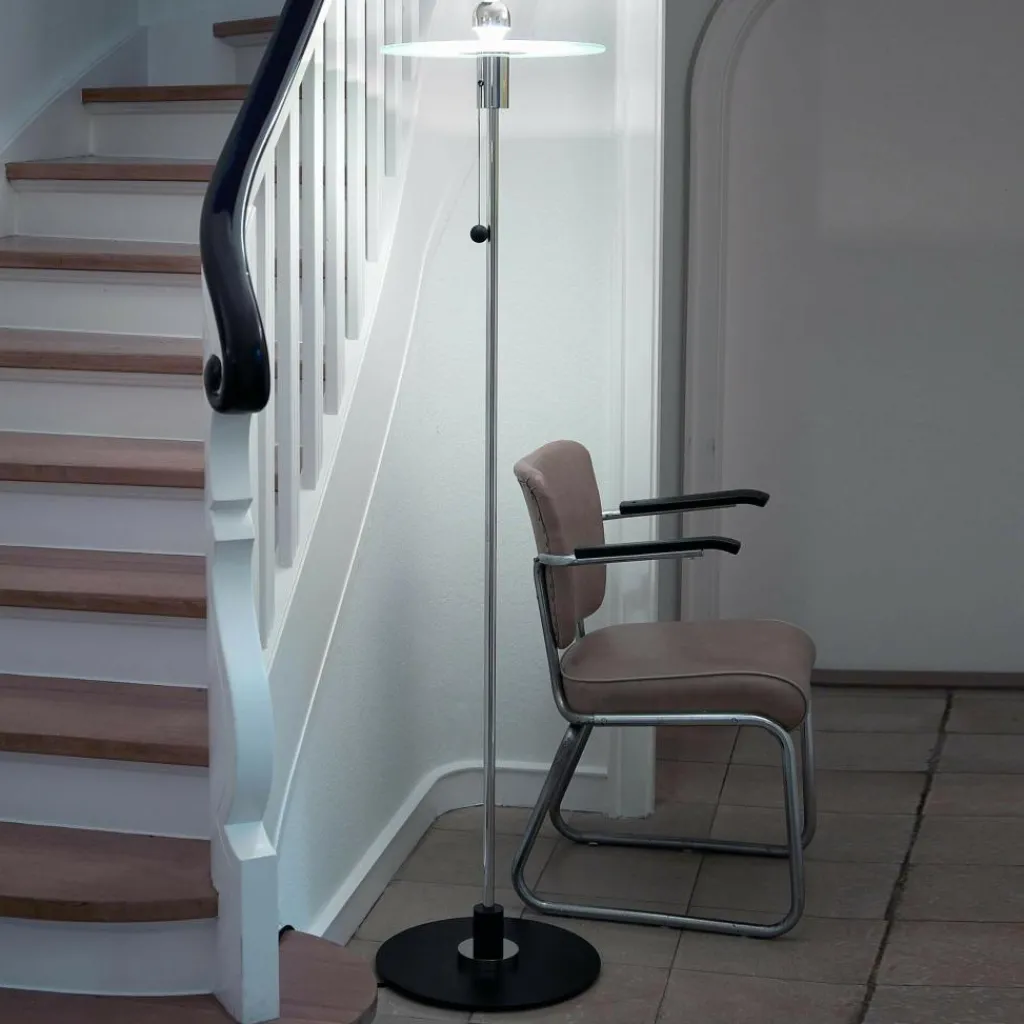 Die BST Bauhaus Stehleuchte wurde von Gyula Pap für die Marke Tecnolumen entworfen. Der ungarische Designer entwarf das Modell in seinem Abschlussjahr als Student am Bauhaus in Weimar. Sie wurde für das von der Bauabteilung und Georg Muche geplante Versuchshaus ‚Am Horn‘ gefertigt.